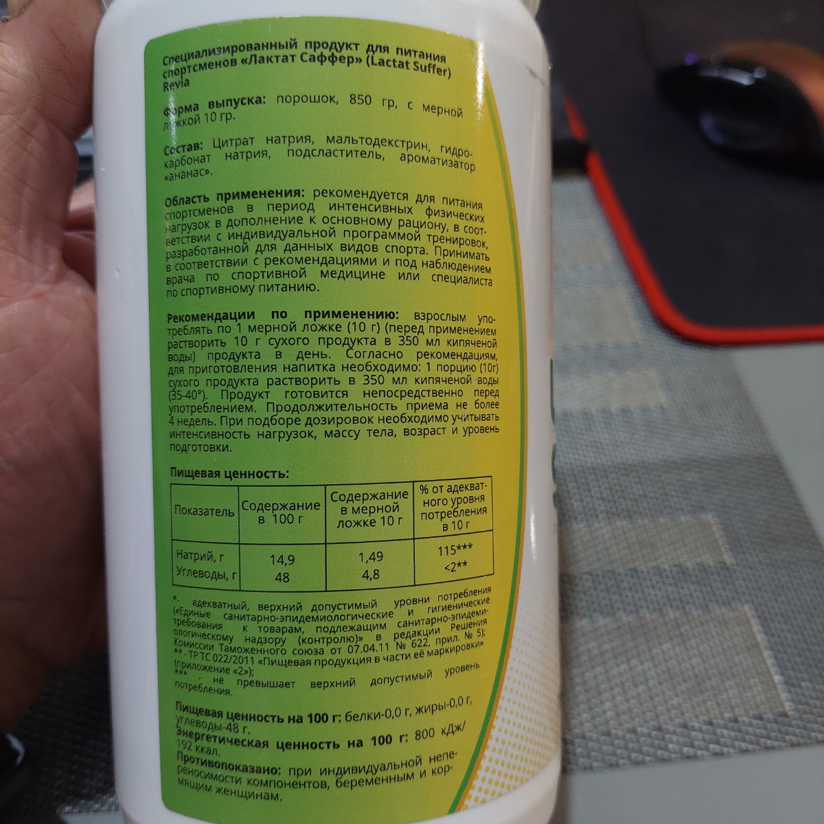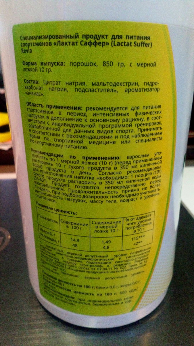 Изотоник Revia Lactat Suffer - Противозакислитель мышц - вкус ананас, 850 гр, до 85 порций