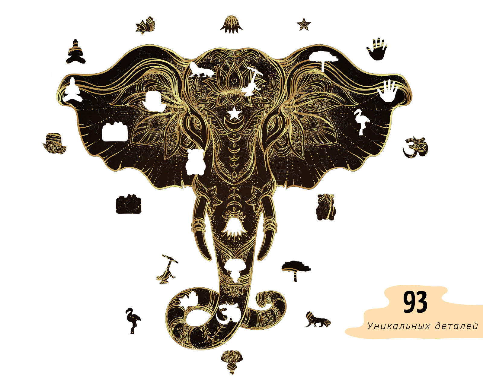 Деревянные пазлы для взрослых и детей Richard Inc. "Священный слон", 21x25 см, 93 детали, в ZIP-пакете, размер S.