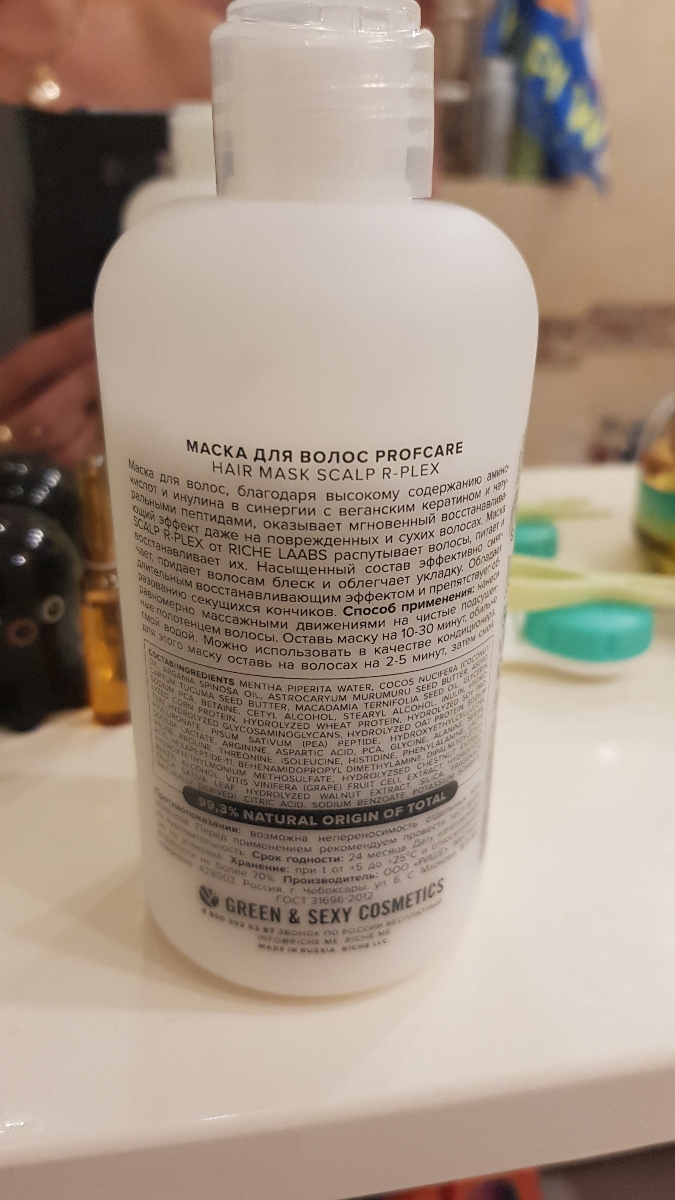 RICHE Маска для волос с пептидами и кератином для укрепления и восстановления поврежденных волос