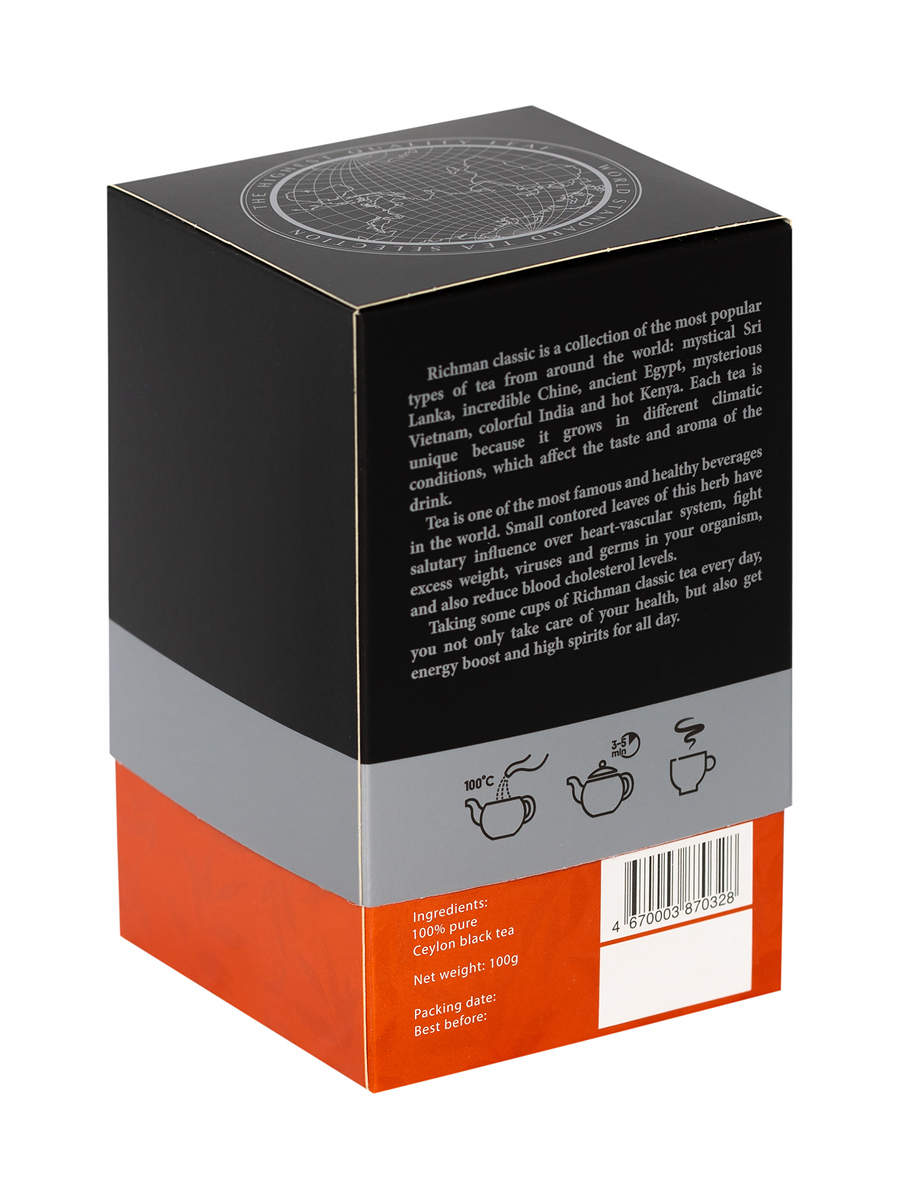 Чай Richman черный крупнолистовой, стандарт "Orange Pekoe" OP с ароматом бергамота 100г ЦЕЙЛОН