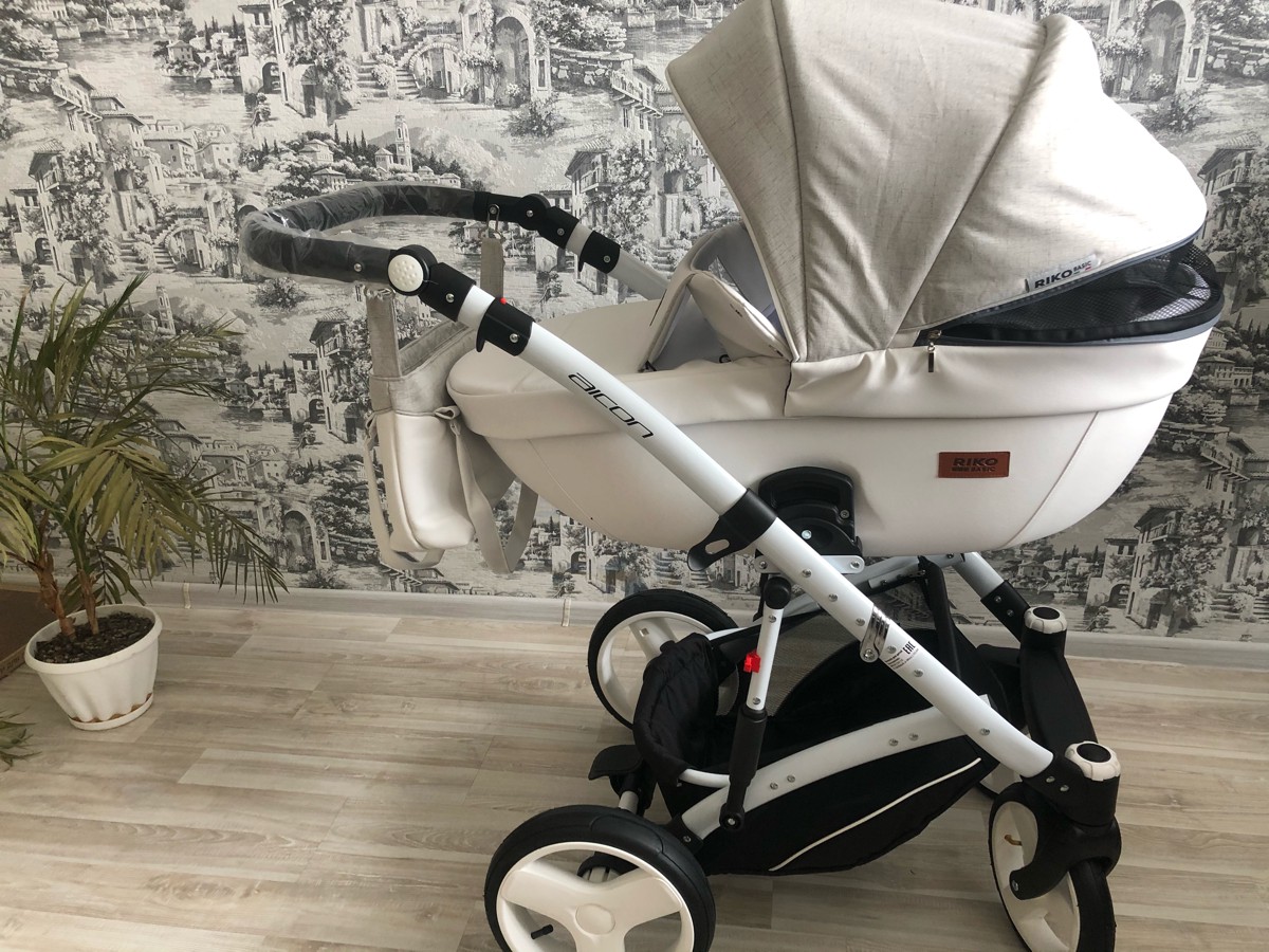 Коляска детская универсальная Riko Basic Aicon 3 в 1 01 серый-белый