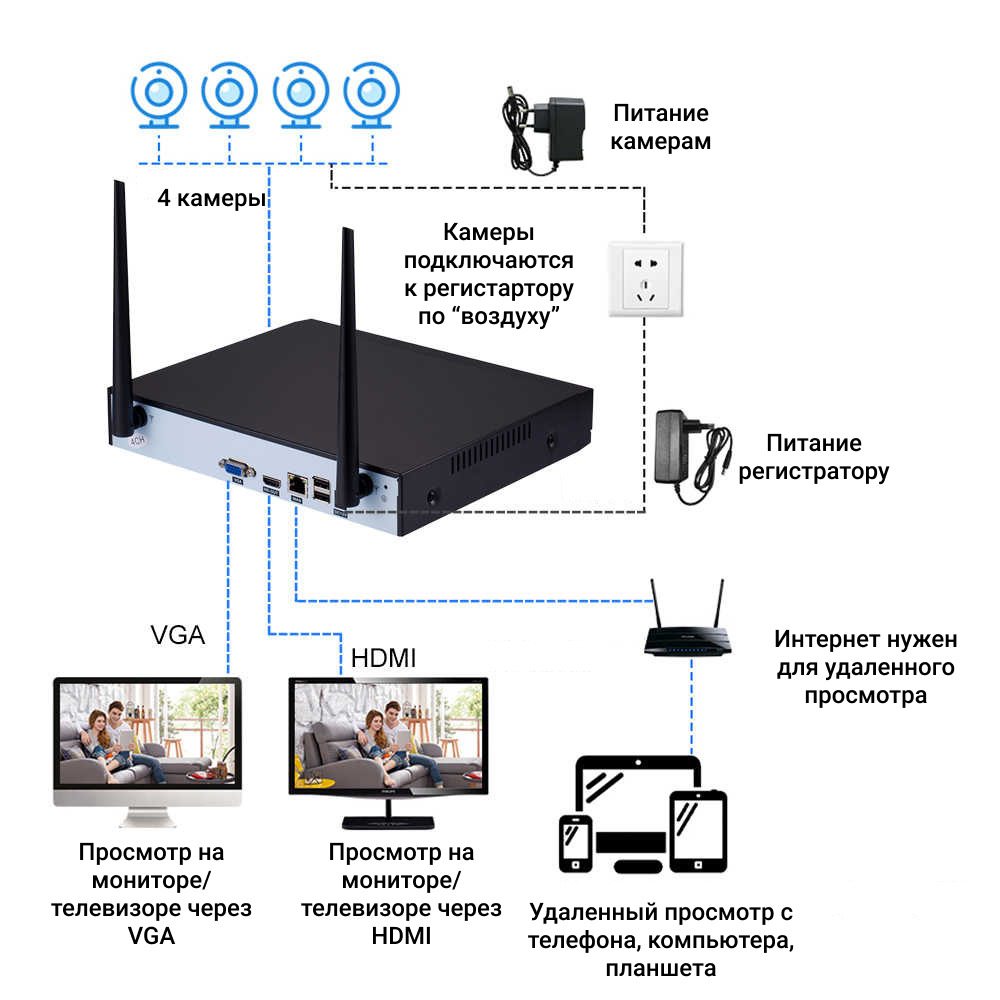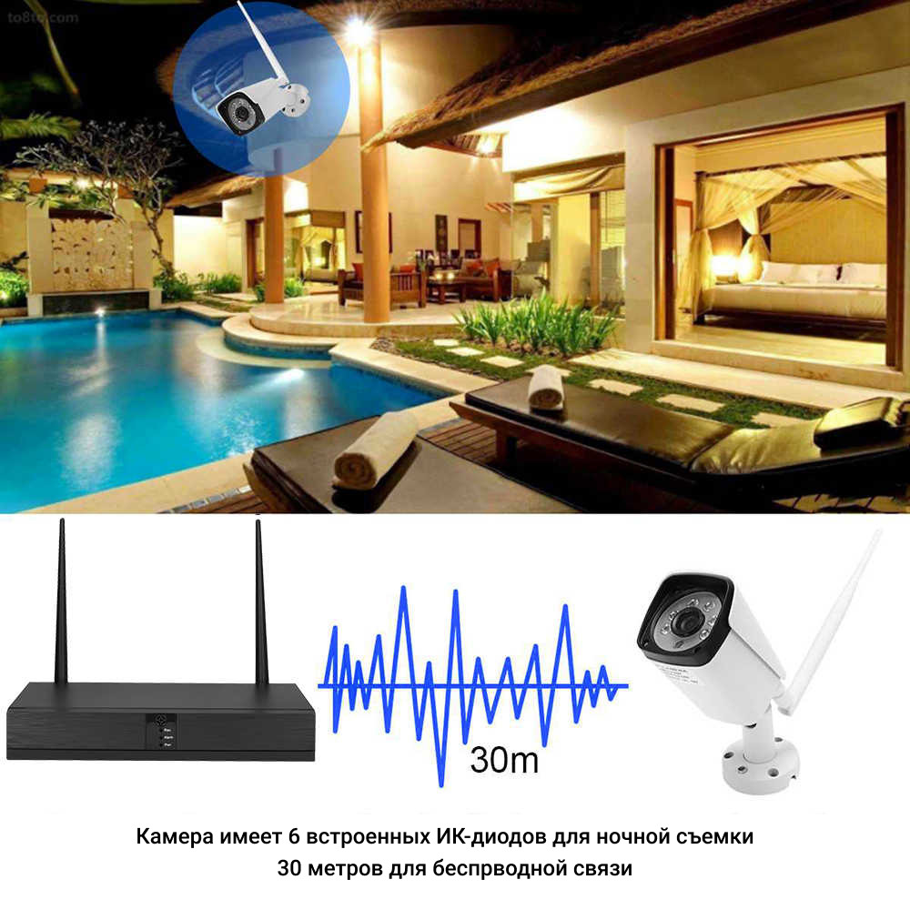 Готовый беспроводной комплект WiFi видеонаблюдения на 4 уличных 2Mp камеры