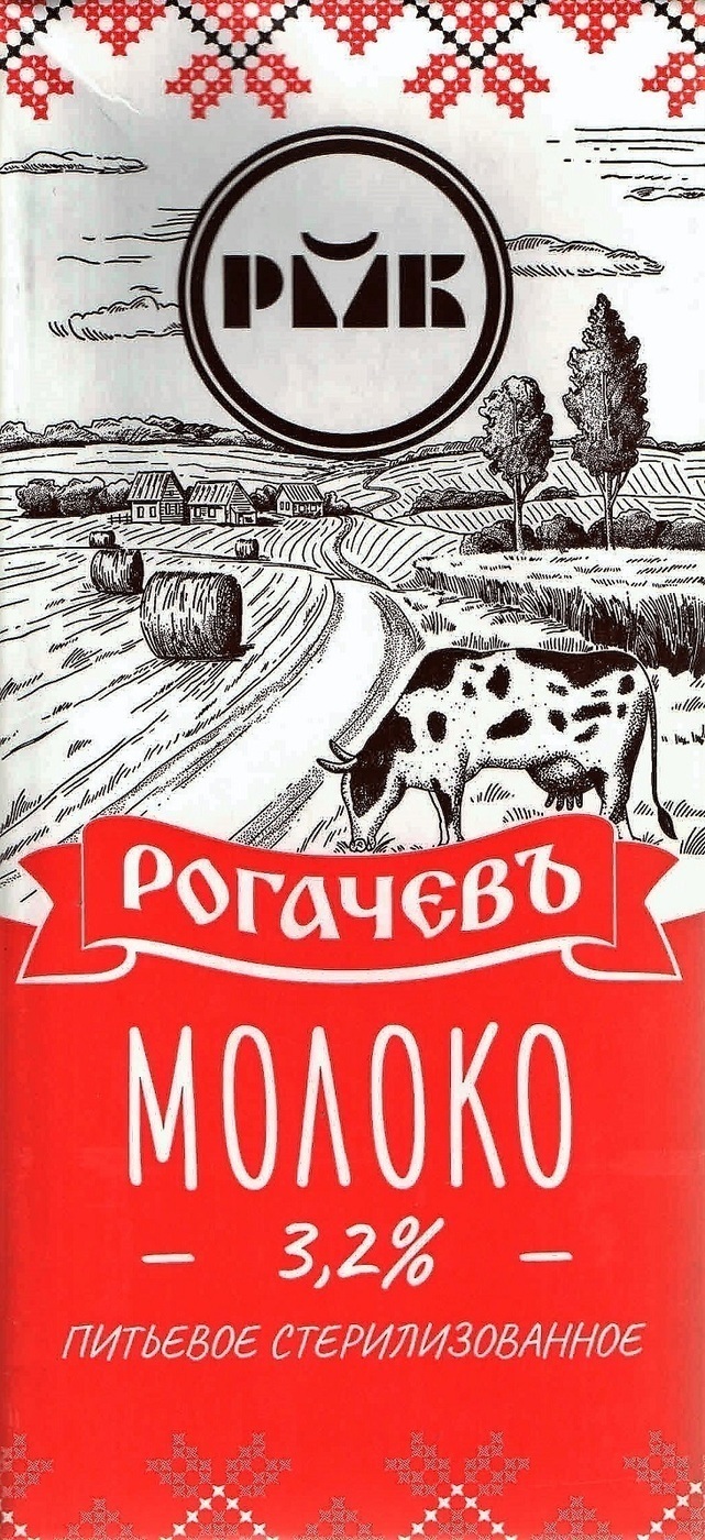 Молоко питьевое стерилизованное, Рогачевъ, 3,2 %, 1 литр, 12 штук
