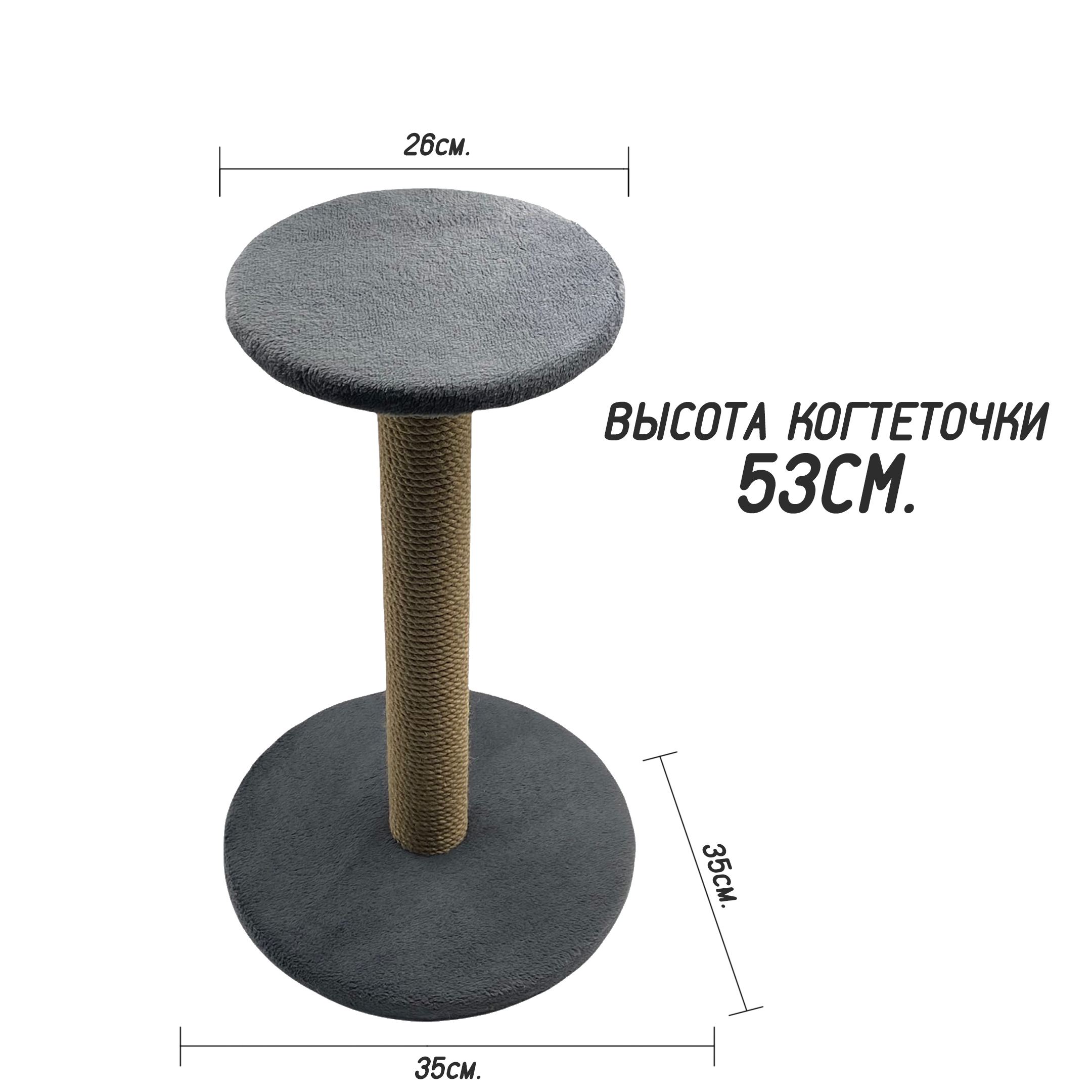Когтеточка столбик 53см, серая, джут