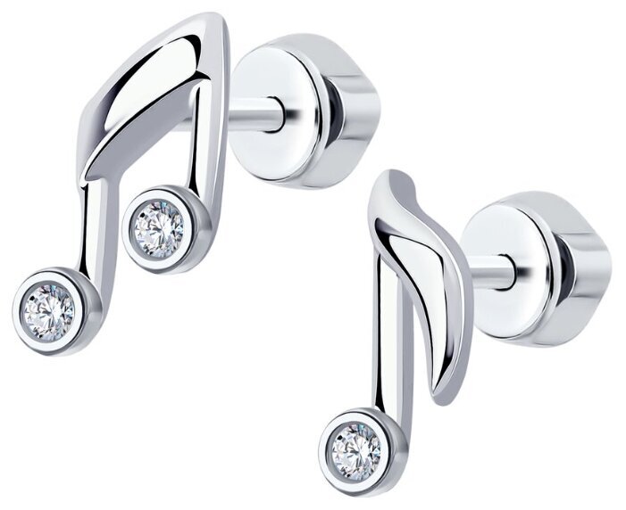 Роскошь Серьги Серьги-пусеты "Нотки"серебро родированное 925 пробы,вставка фианит
