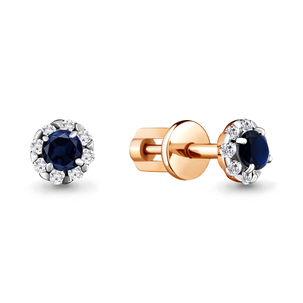 Роскошь Серьги детские "Цветочек" золото 585 пробы, вставки- голубые фианиты