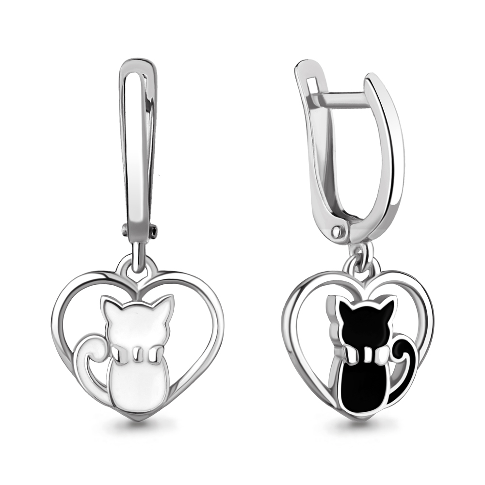 Роскошь Серьги детские " Котики" серебро родированное 925 пробы, эмаль