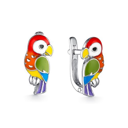 Роскошь Серьги детские "Попугай Кеша" серебро родированное 925 пробы, покрытие эмаль