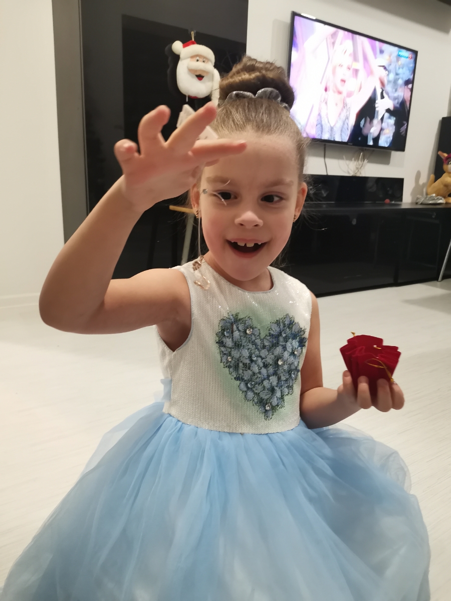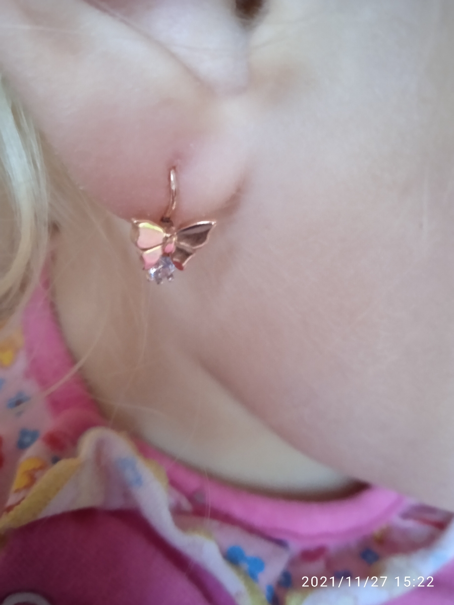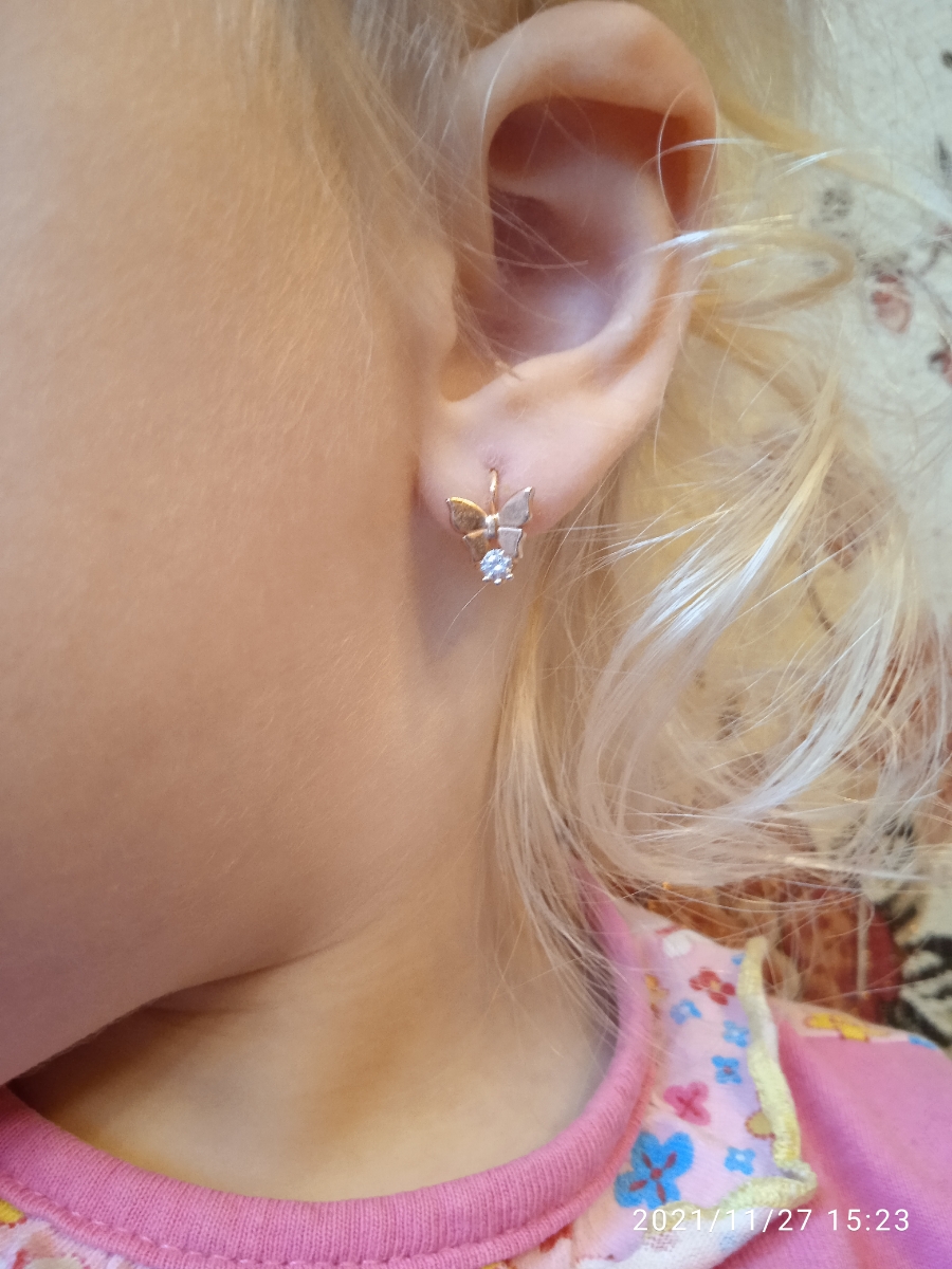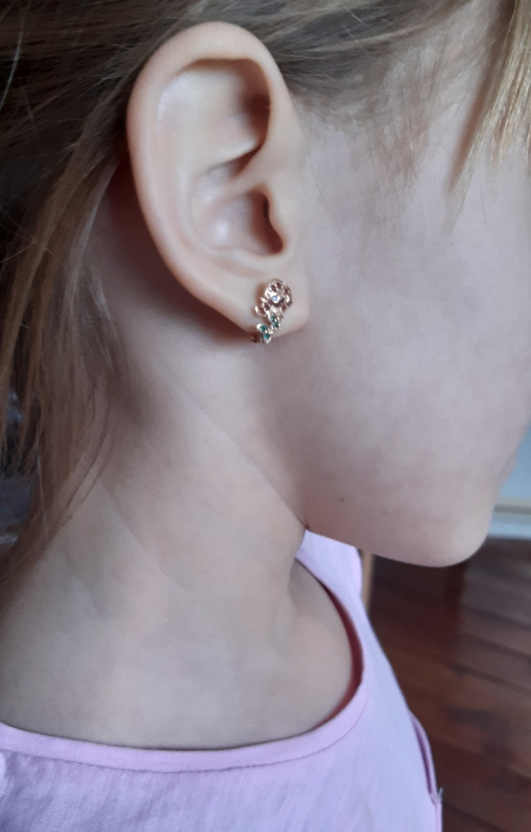 Роскошь Серьги детские "Цветочек" золото 585 пробы, вставки- голубые фианиты