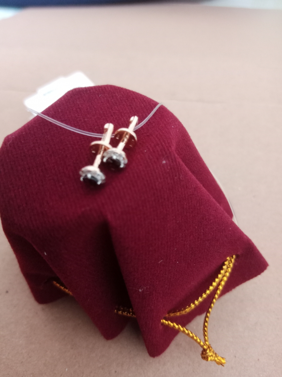 Роскошь Серьги пусеты серебро позолоченное 925 пробы. Вставка-гранат, фианит