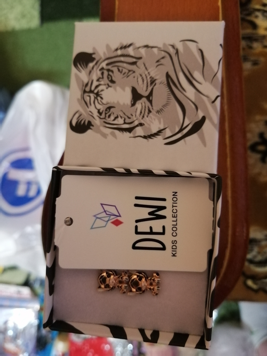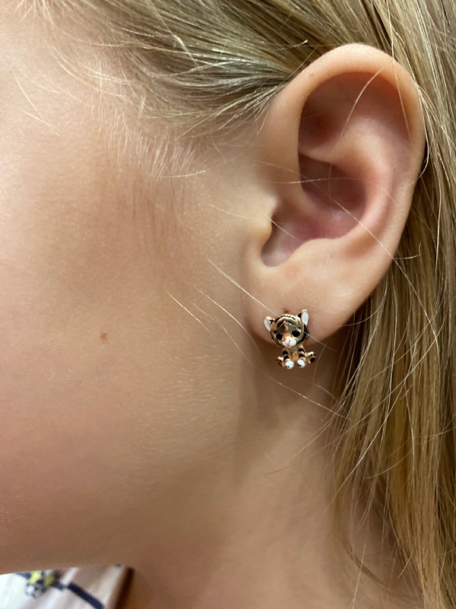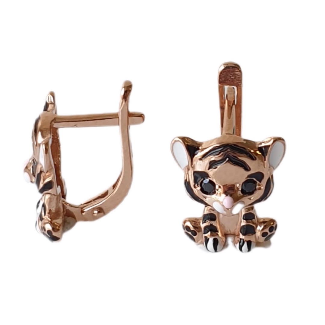 Роскошь Серьги детские "Тигрушка" серебро позолоченное 925, эмаль