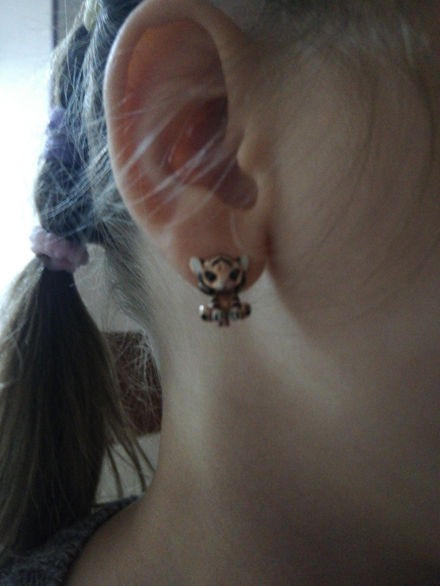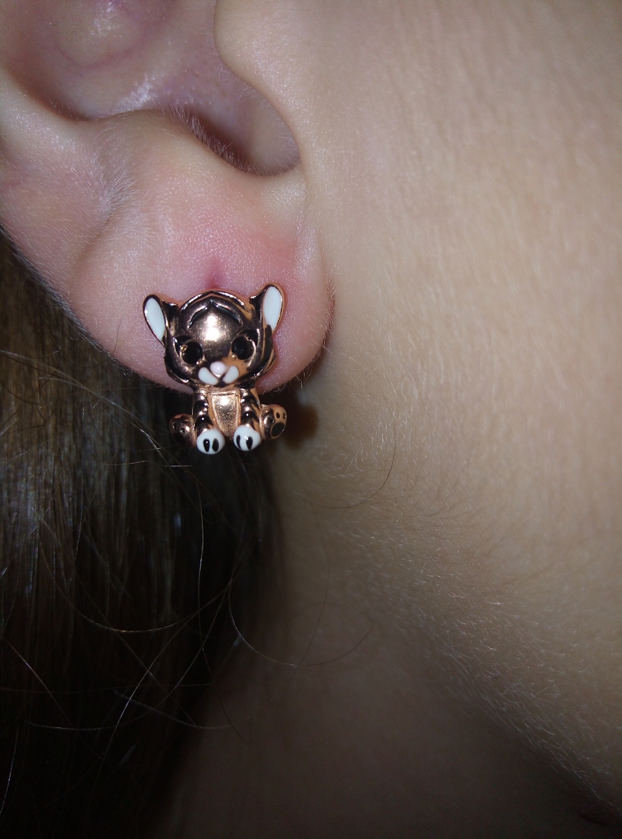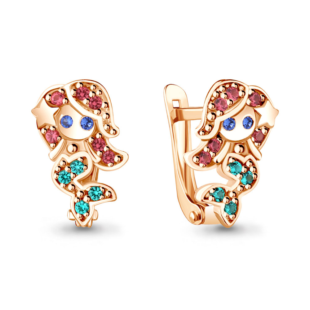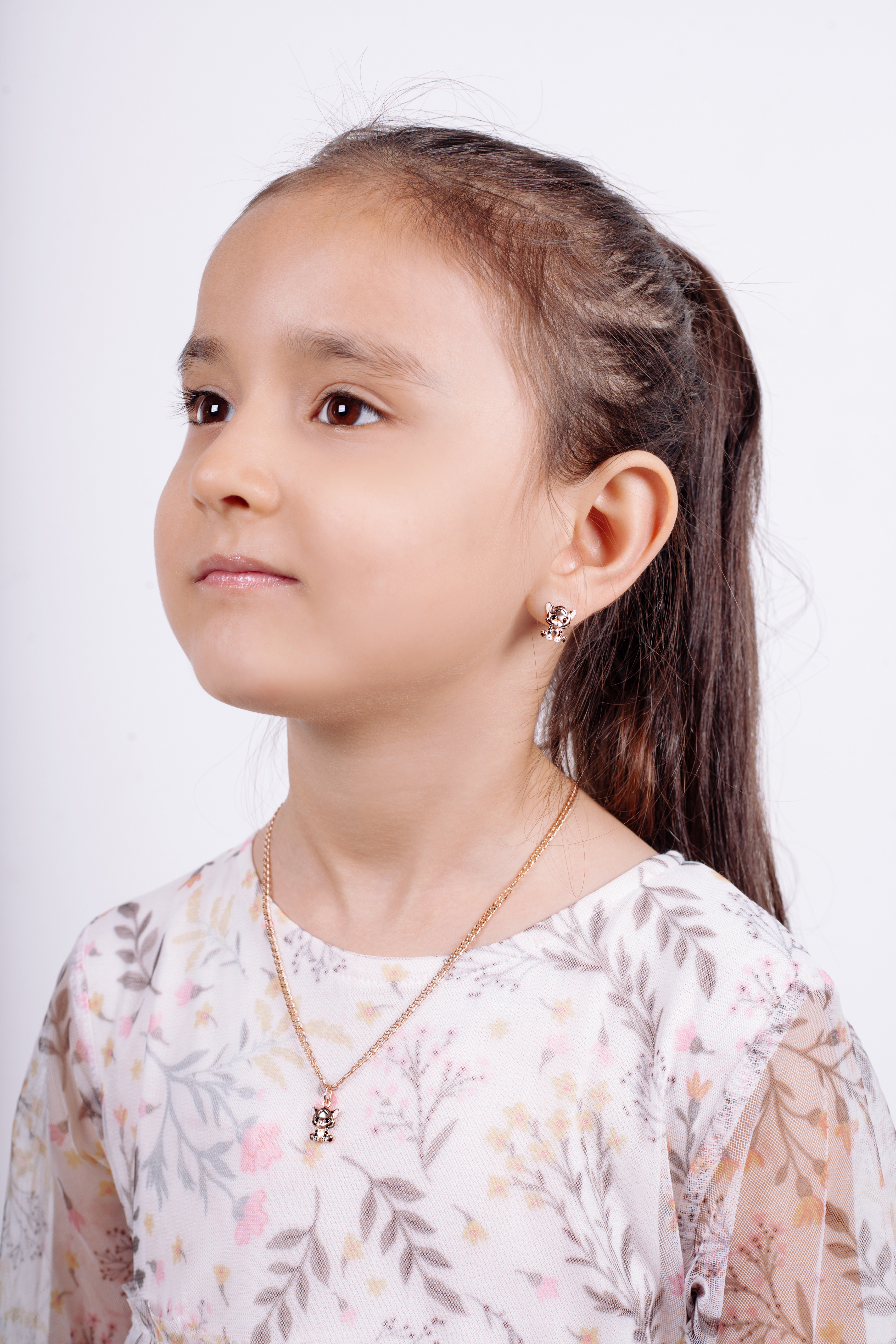 Роскошь Серьги детские "Тигрушка" серебро позолоченное 925, эмаль