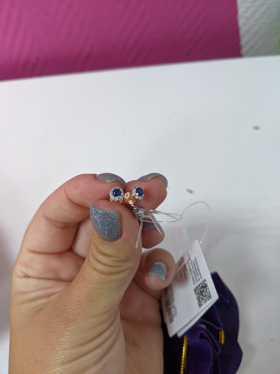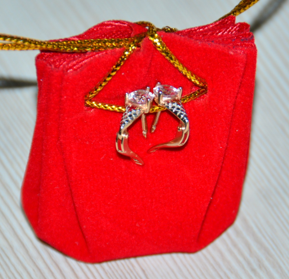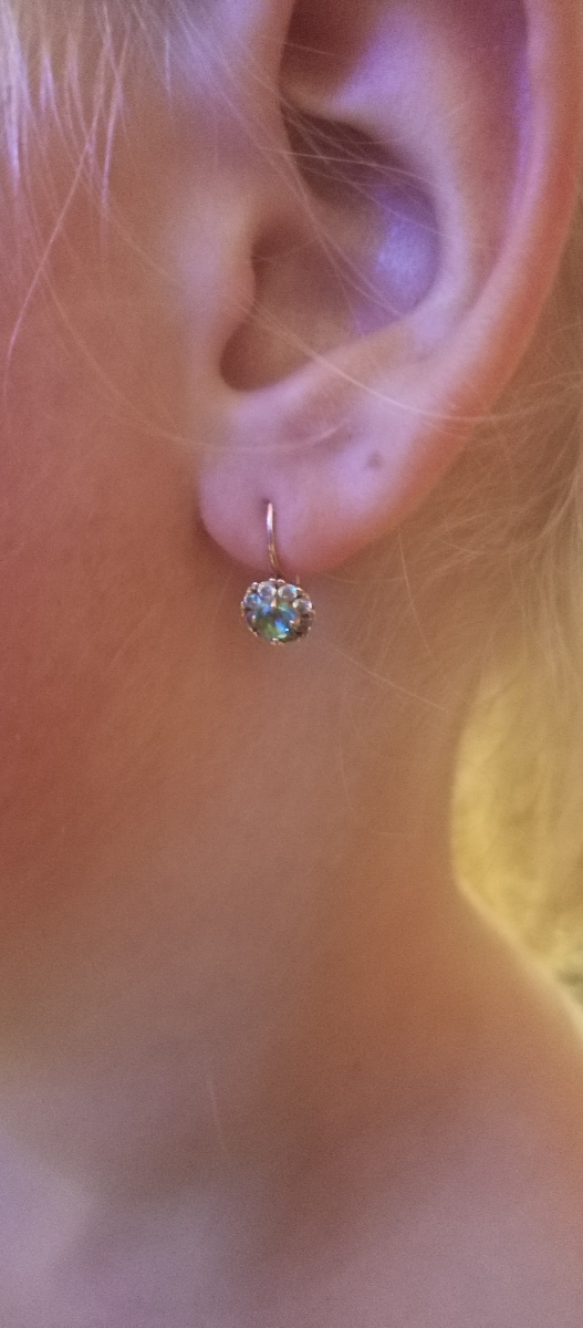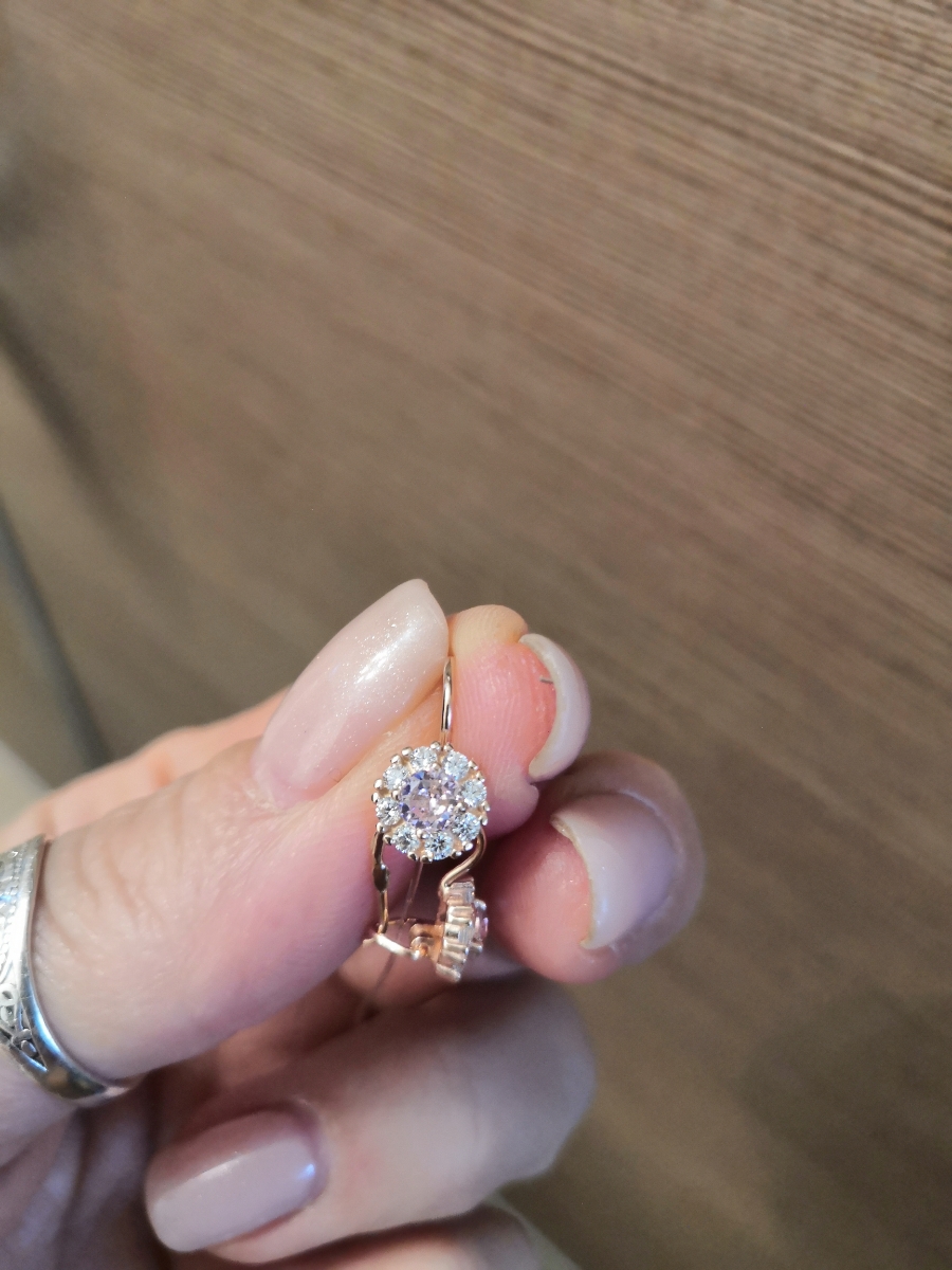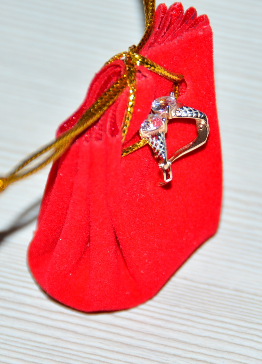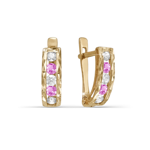 Роскошь Серьги детские на петле, серебро позолоченное, вставка- фианиты, ювелирное стекло