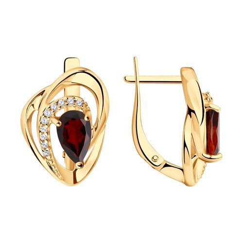 Роскошь Серьги с Гранатом, серебро позолоченное 925 пробы
