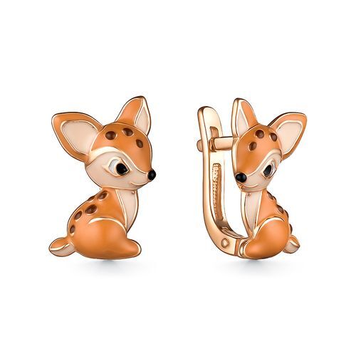 Роскошь Серьги детские "Олененок Бемби" серебро позолоченное 925 пробы, эмаль