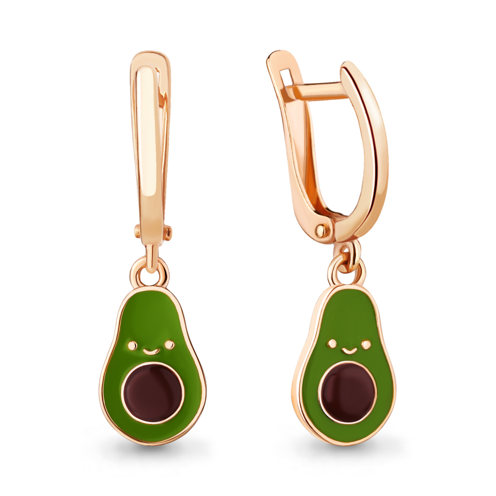 Роскошь Серьги детские "Авокадо". Серебро позолоченное 925 проба. Покрытие-эмаль