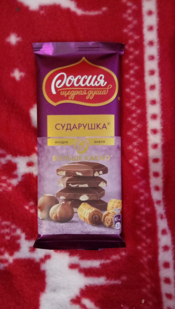 "РОССИЯ" - ЩЕДРАЯ ДУША!®. СУДАРУШКА. Молочный шоколад с фундуком и вафлей. 82г