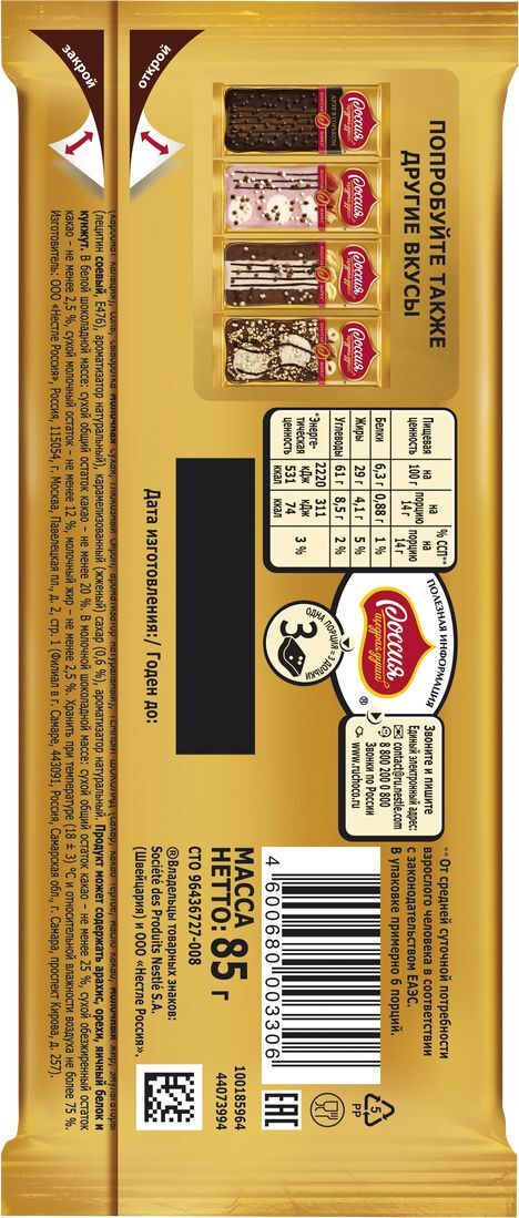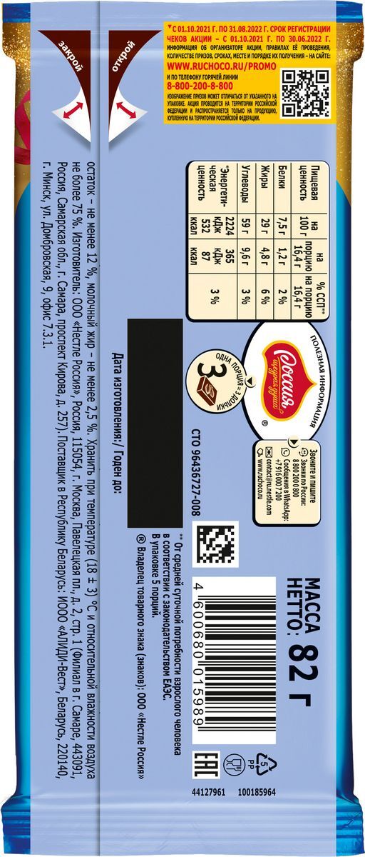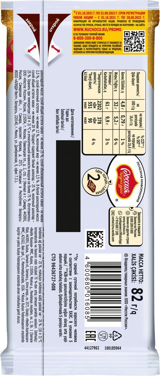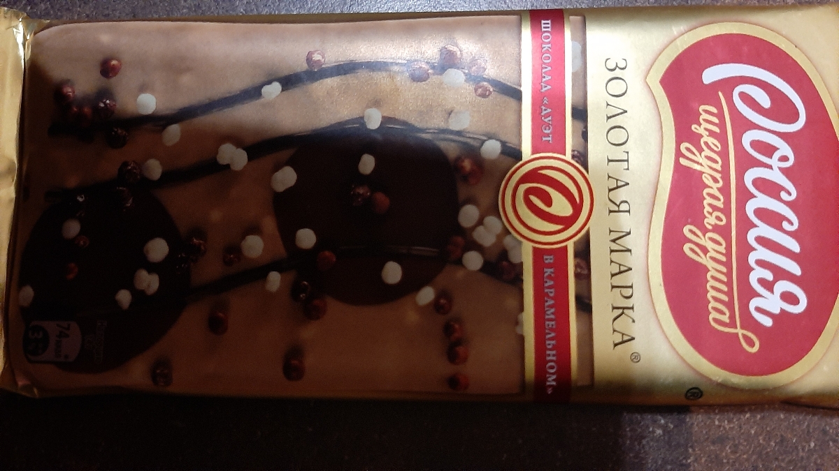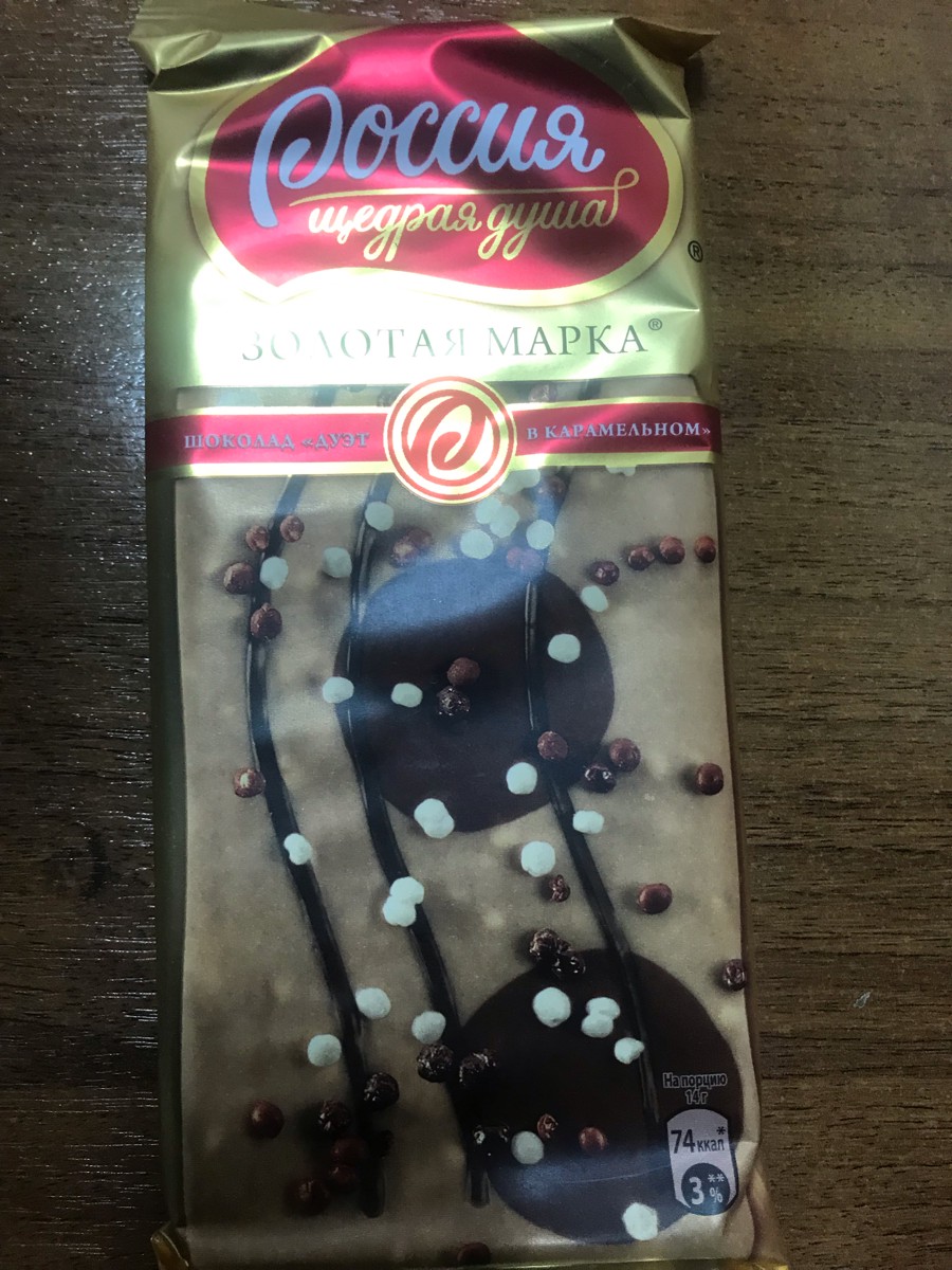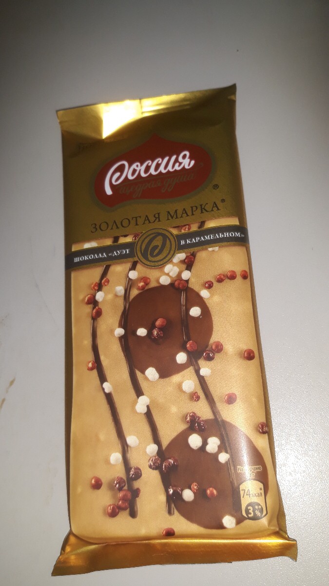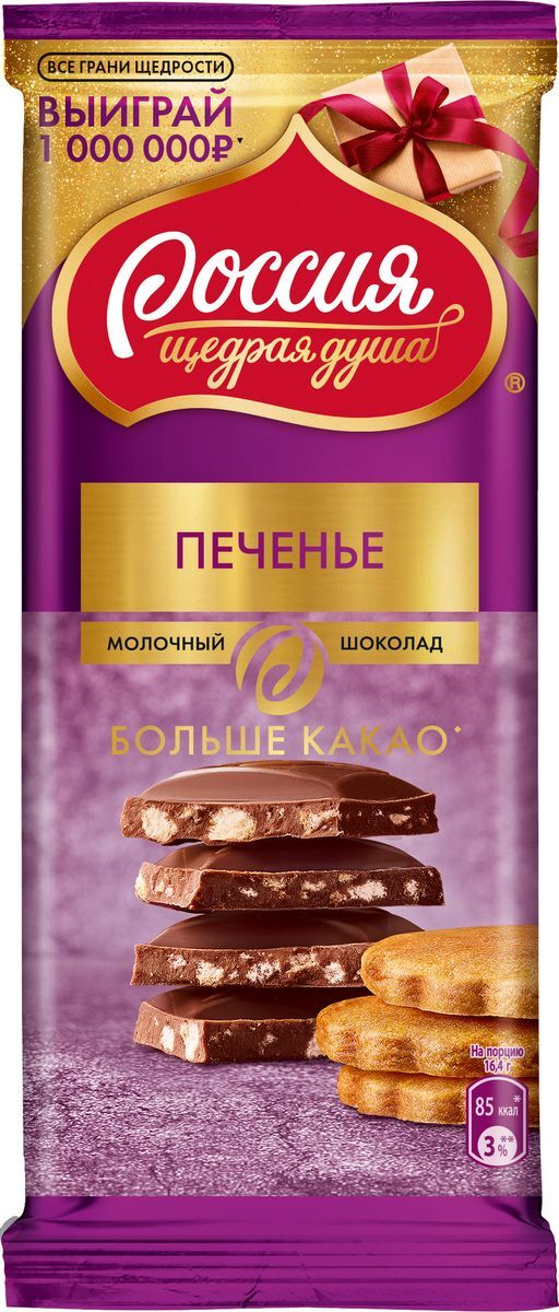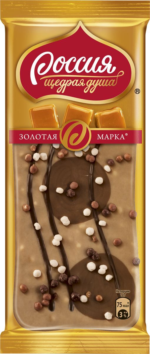 Карамельный белый шоколад "Россия" - Щедрая душа! "Золотая марка", дуэт с печеньем, 85 г