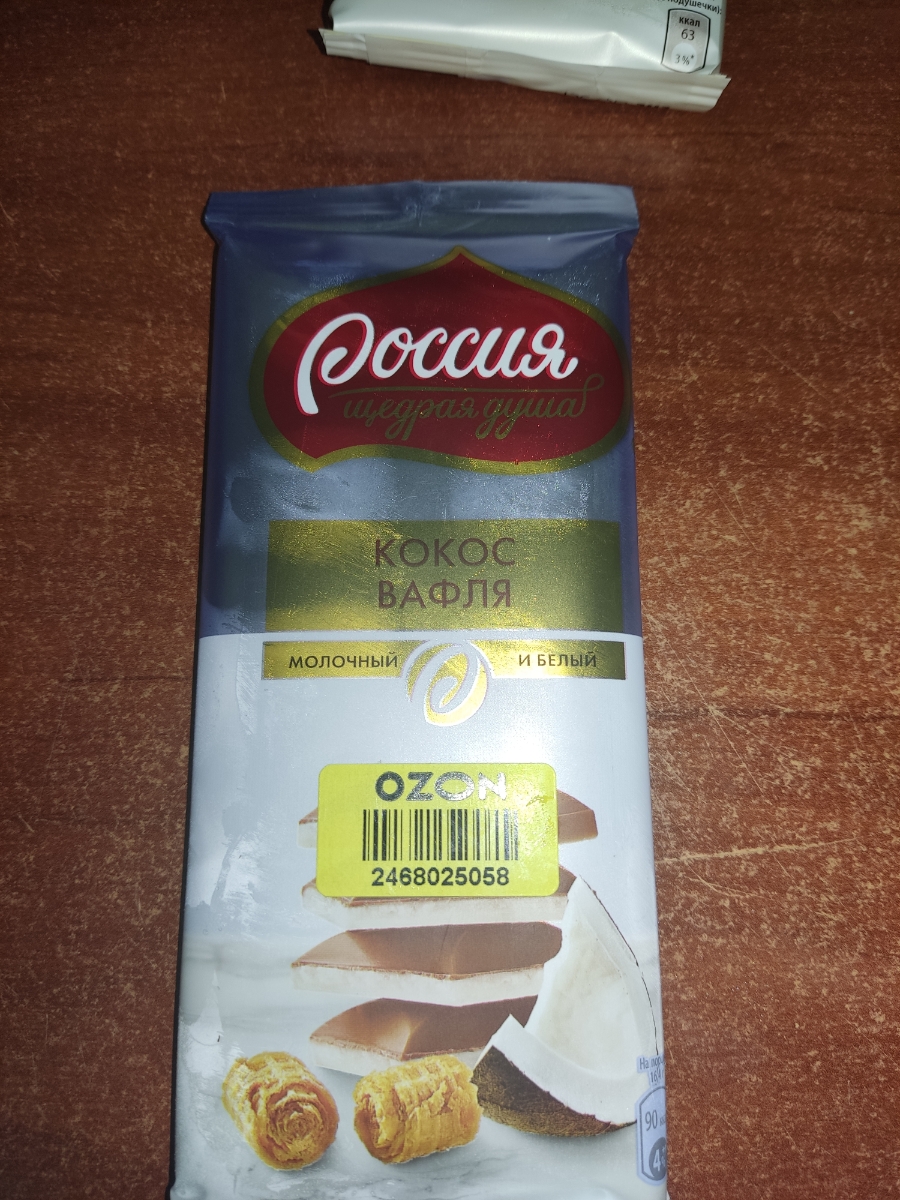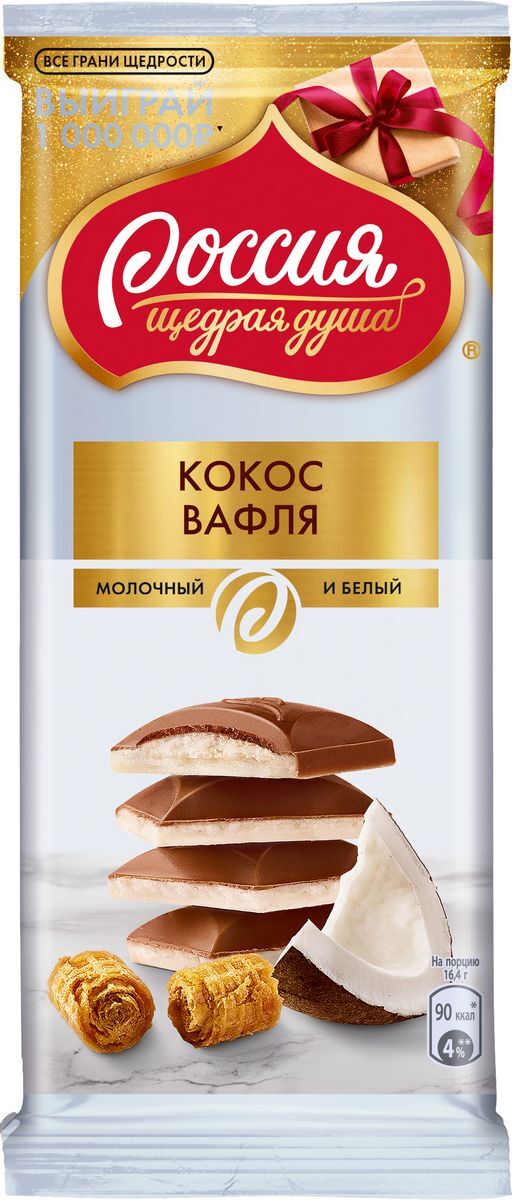 Шоколад Россия-Щедрая душа!, с кокосовой стружкой и вафлей, 82 г