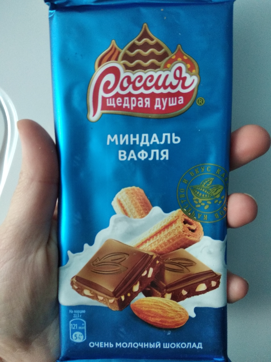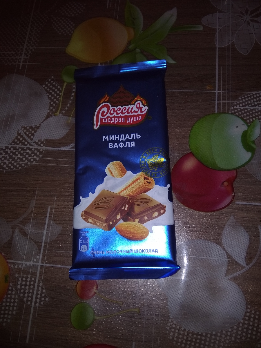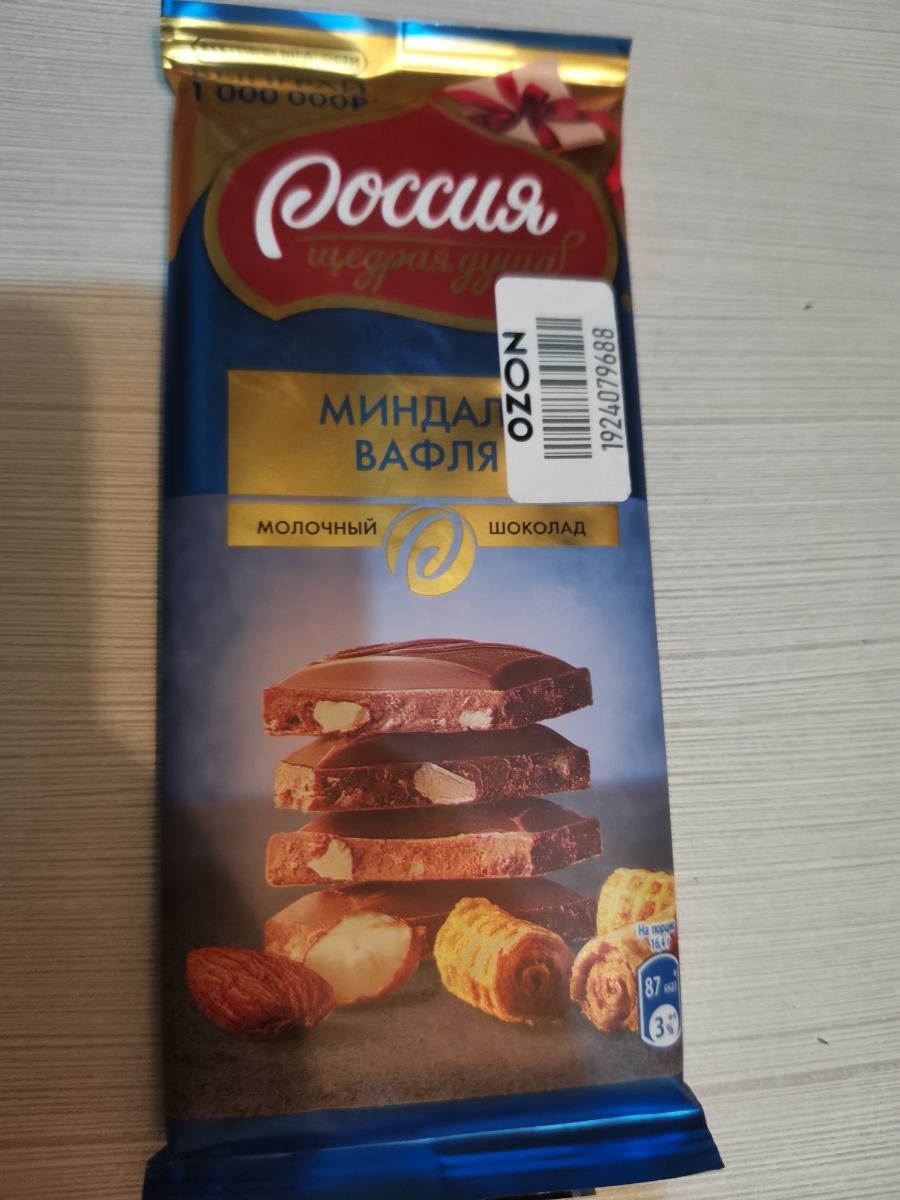 Шоколад Россия-Щедрая душа!, с миндалем и вафлей, 82 г