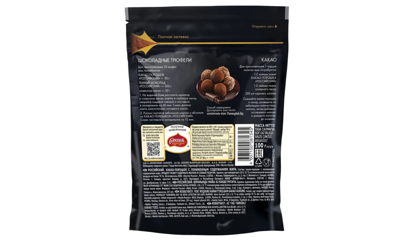 Какао-порошок Россия-Щедрая душа! Российский, 100 г 2шт