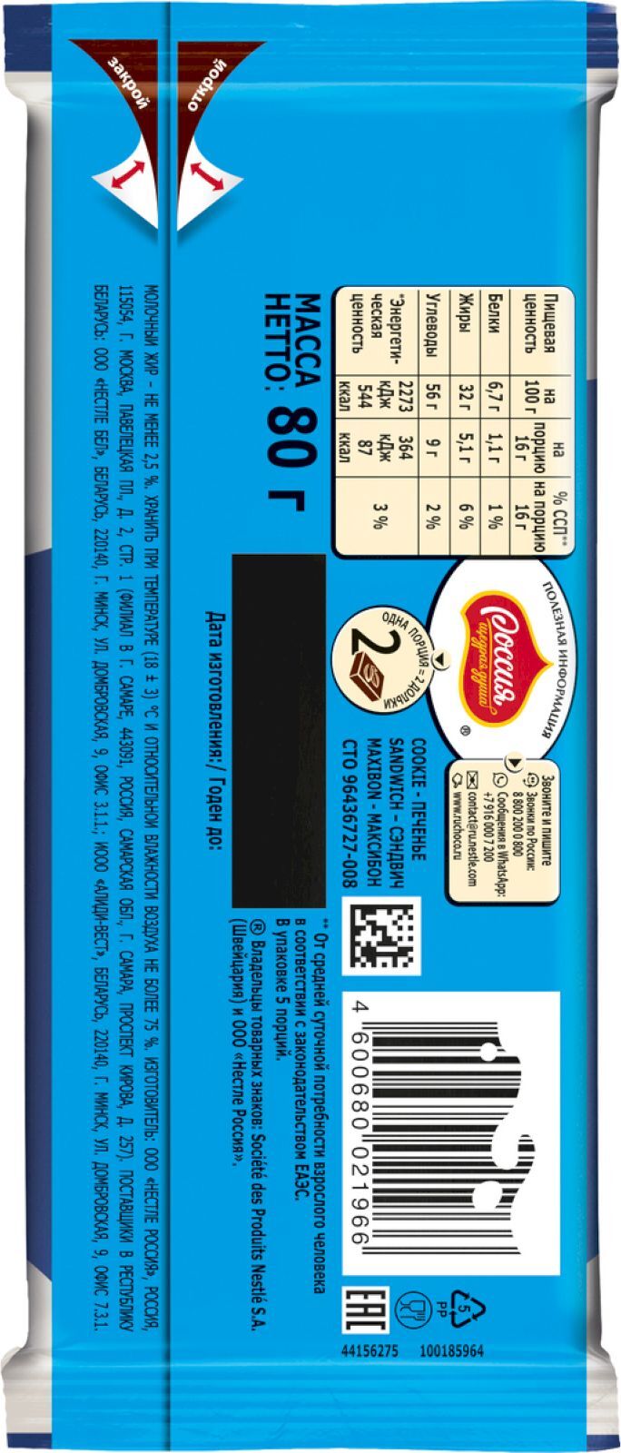 Шоколад Россия-Щедрая душа! со вкусом мороженого Maxibon и печеньем, 80 г