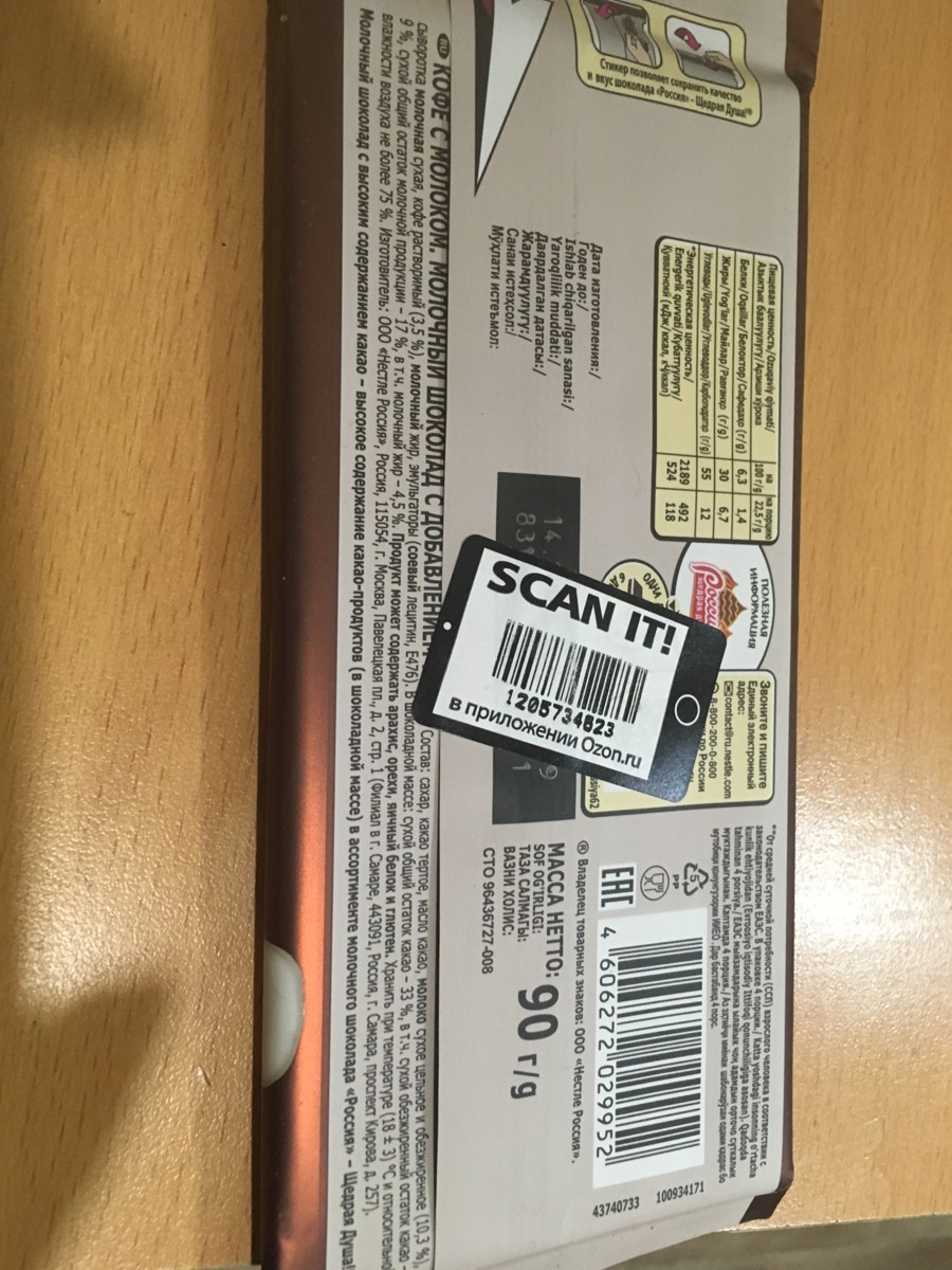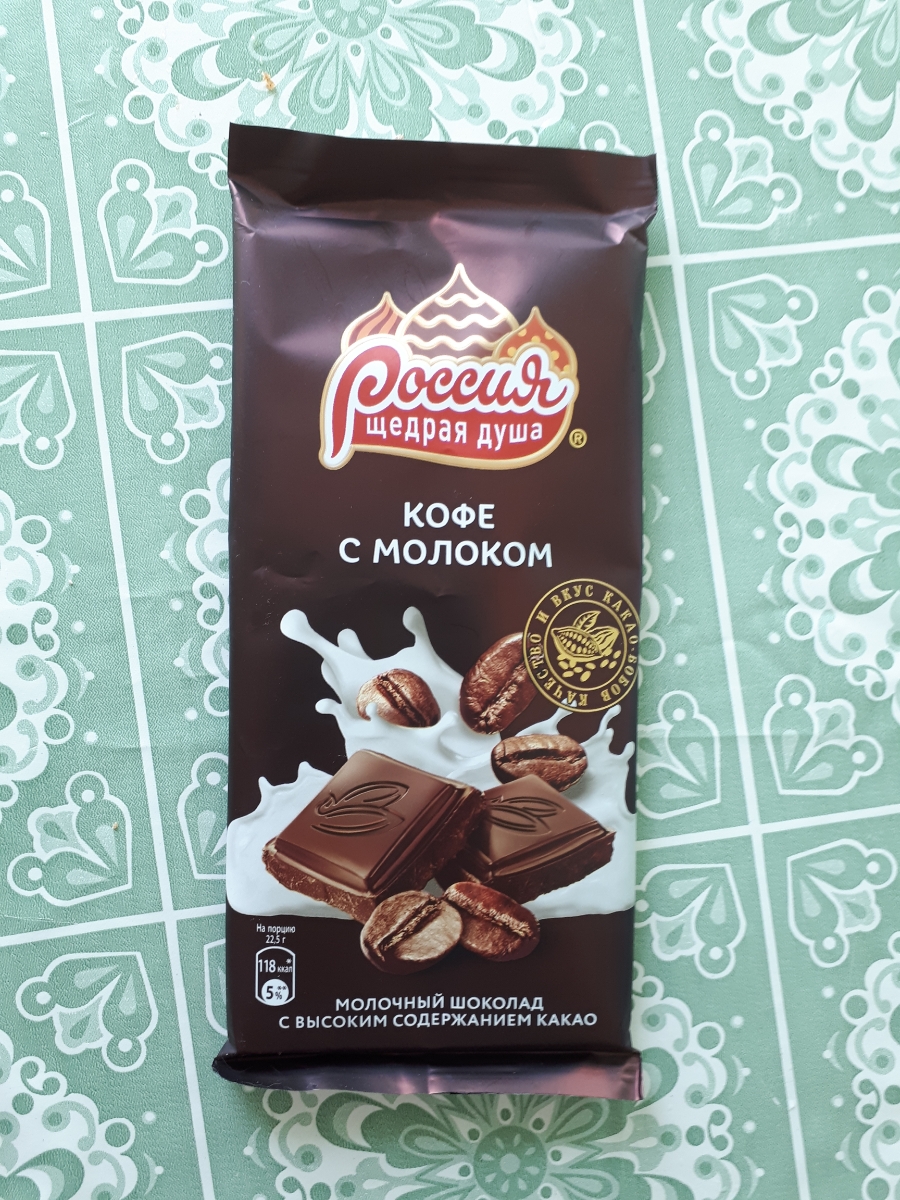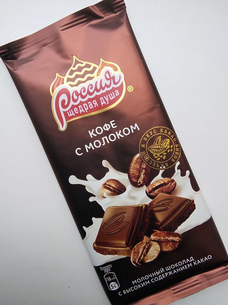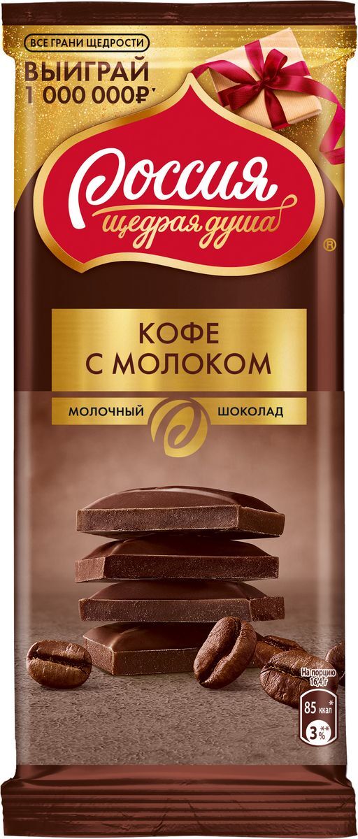 Шоколад Россия-Щедрая душа! КОФЕ С МОЛОКОМ, с добавлением кофе, 82 г