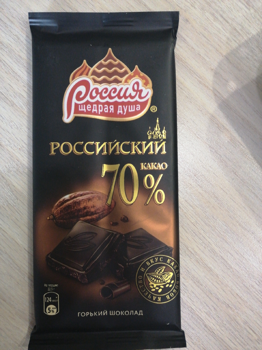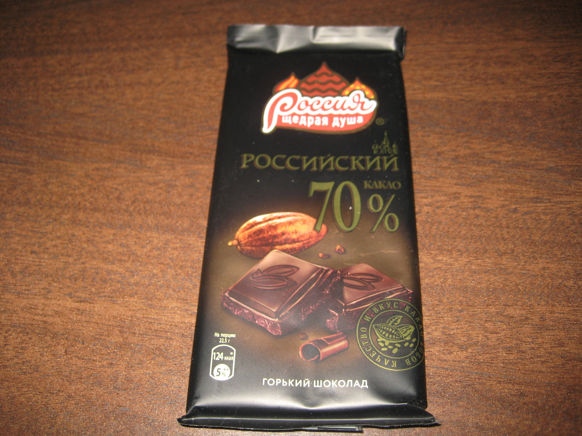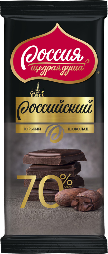 Горький шоколад РОССИЙСКИЙ с 70 % содержанием какао-продуктов, 82 г