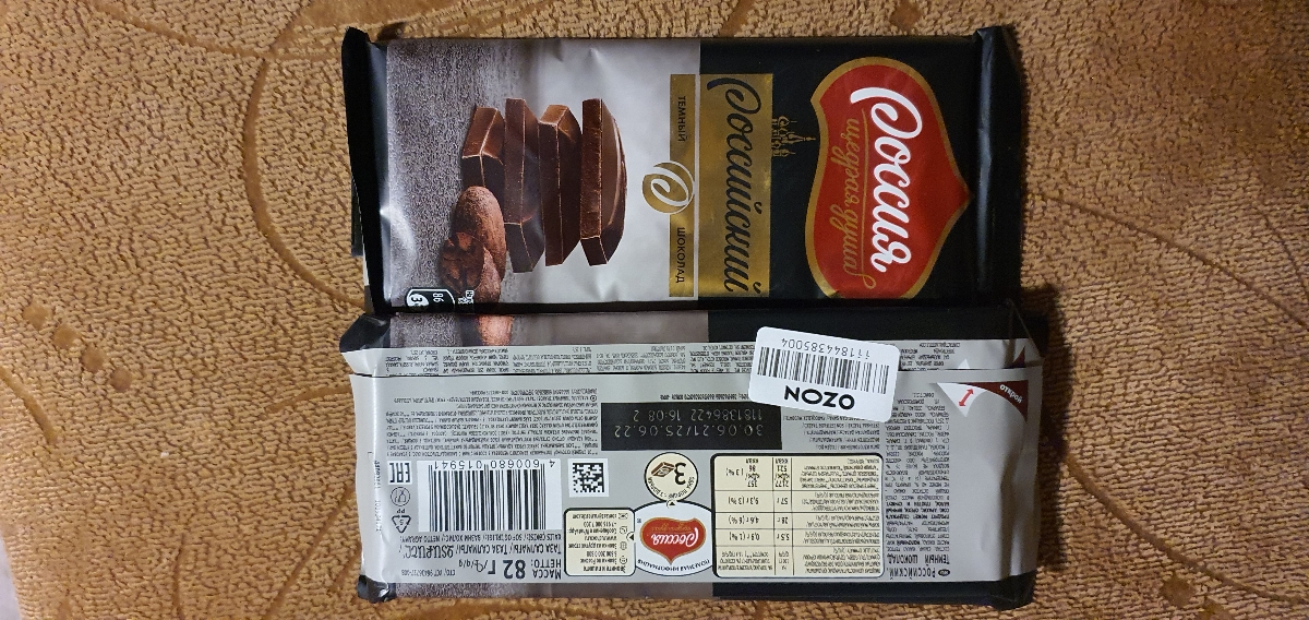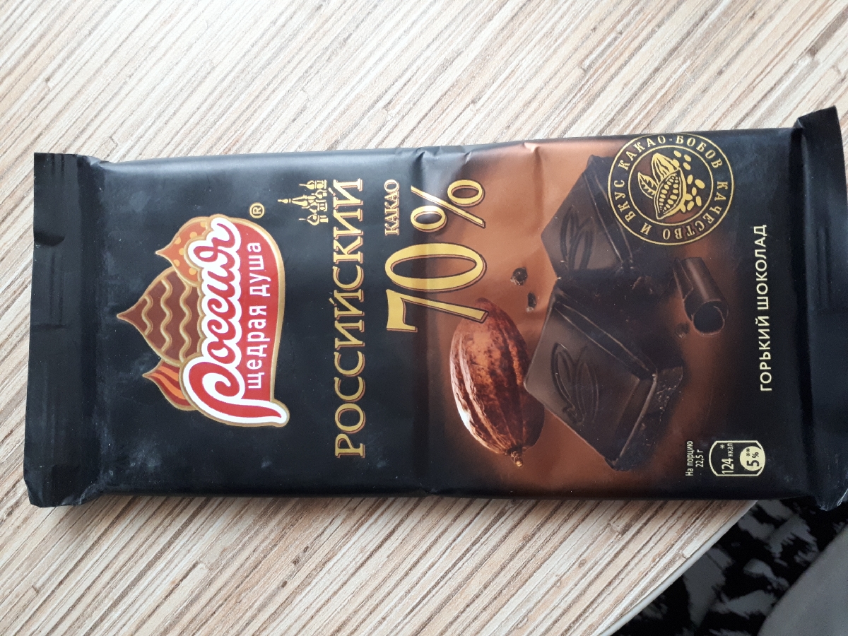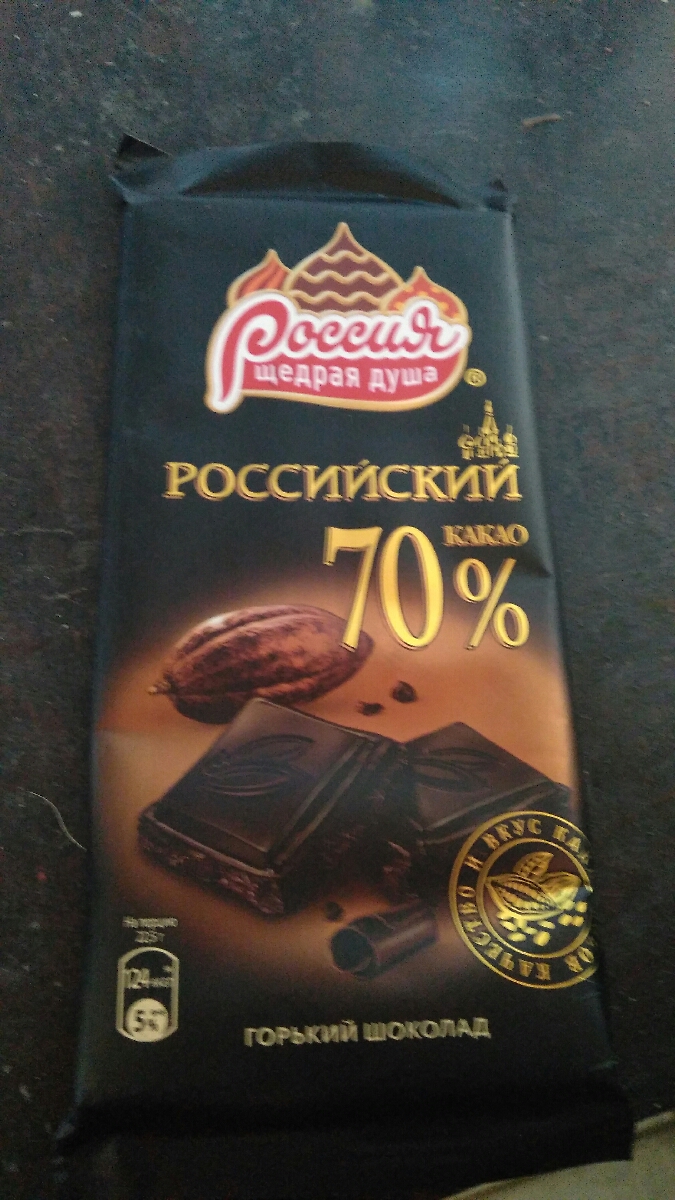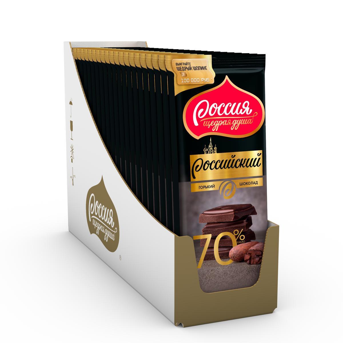 Горький шоколад РОССИЙСКИЙ с 70 % содержанием какао-продуктов, 82 г