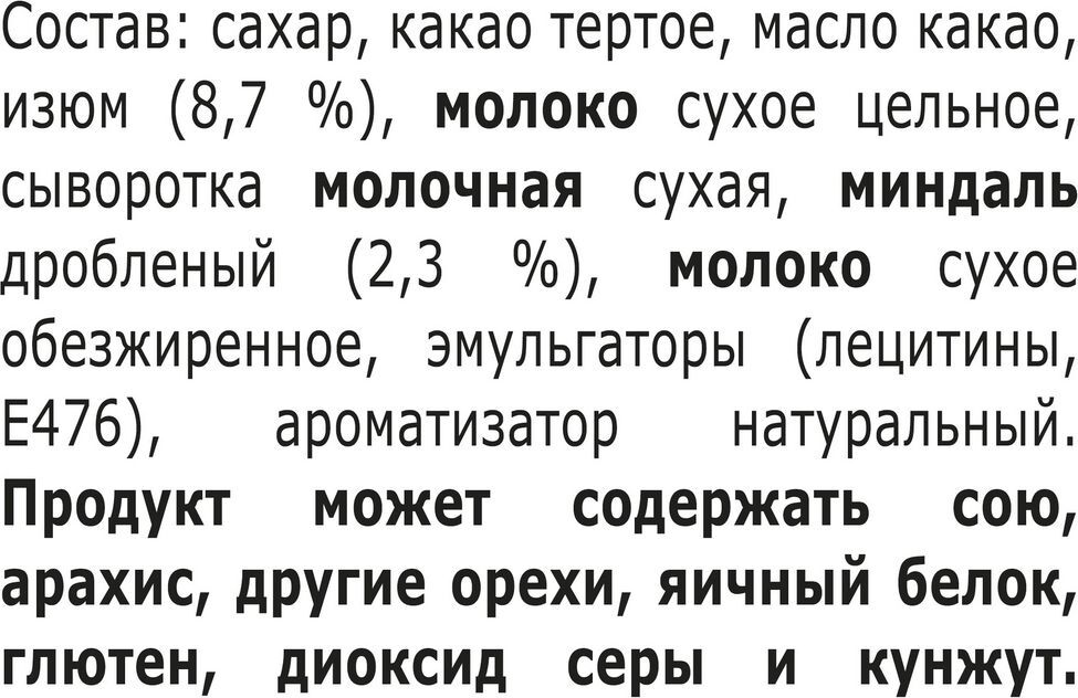 Шоколад Россия-Щедрая душа!, с миндалем и изюмом, 82 г