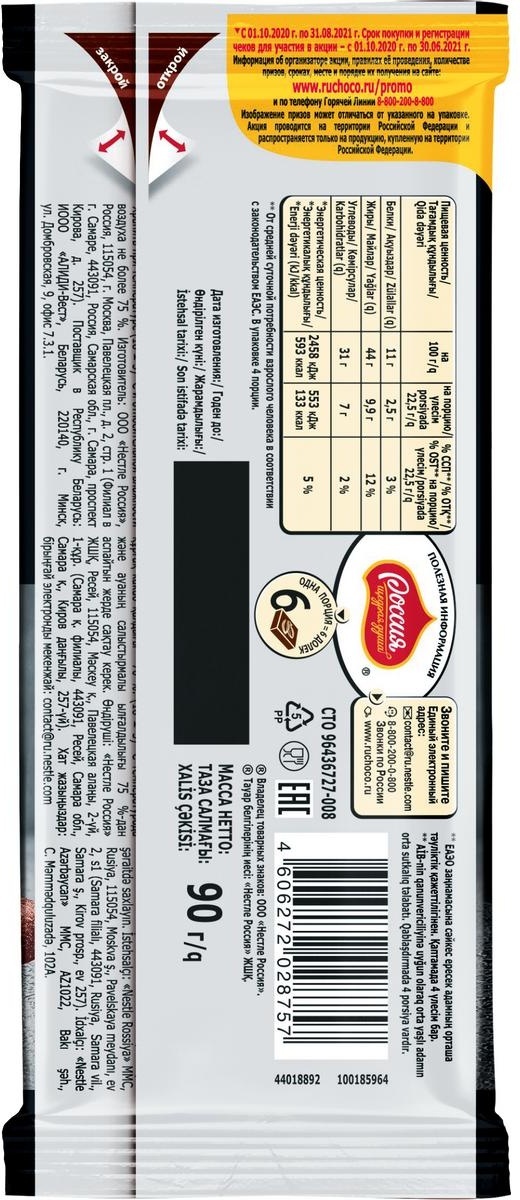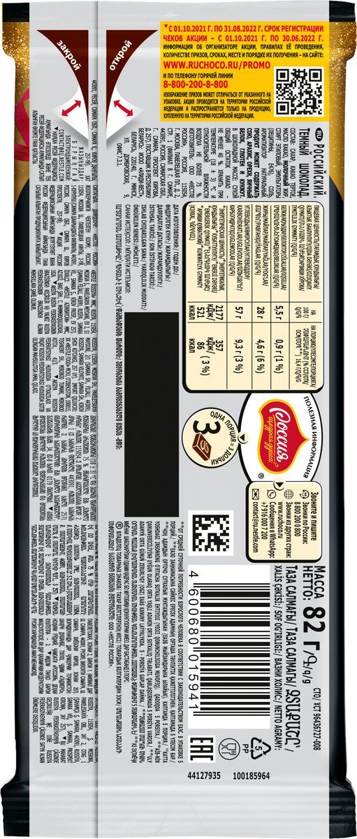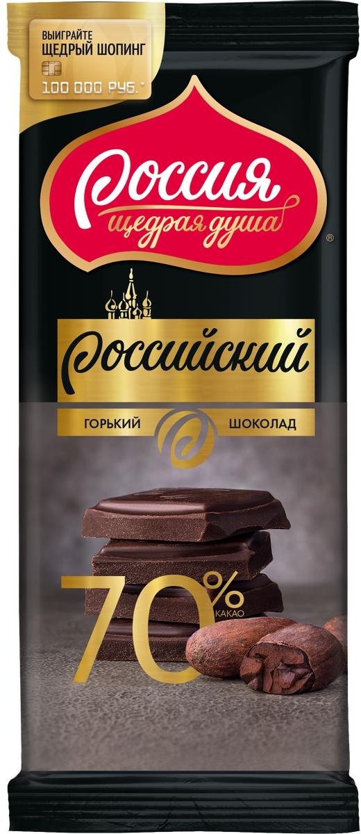 Россия-Щедрая душа! "Российский" горький шоколад, 90 г