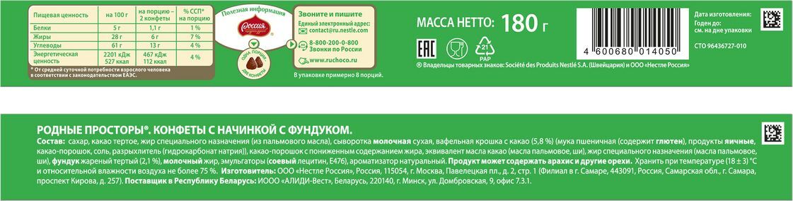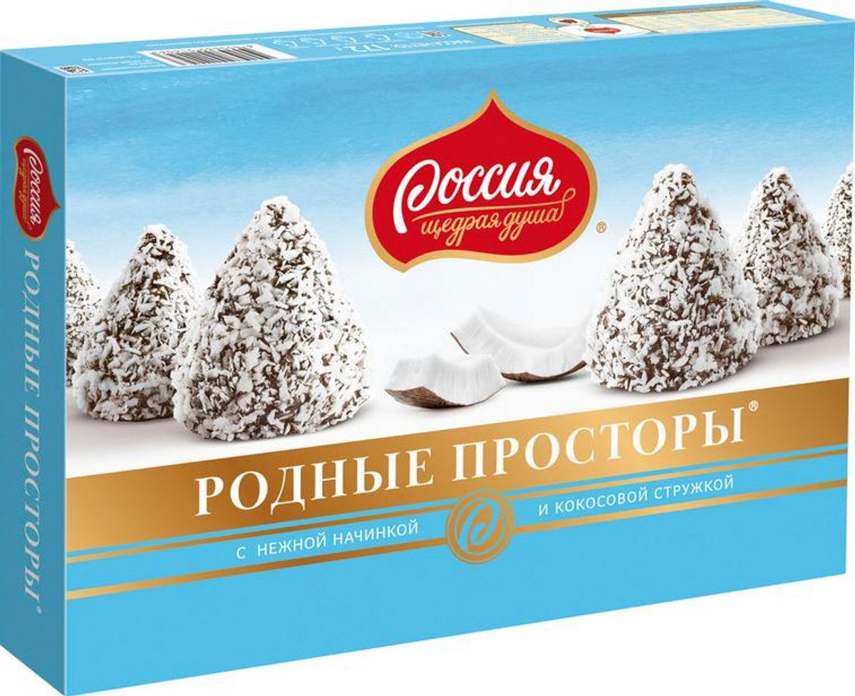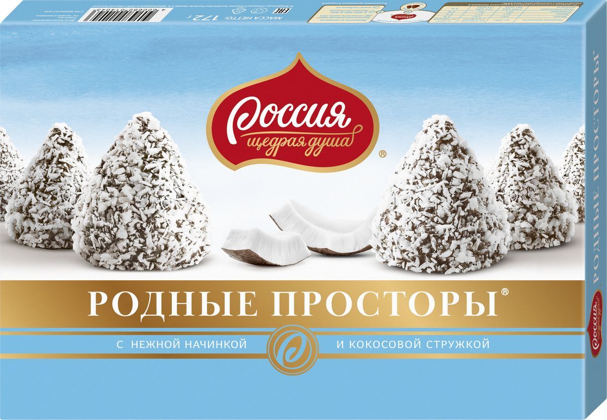 Конфеты шоколадные Россия-Щедрая душа! Родные просторы, с кокосом, 172 г