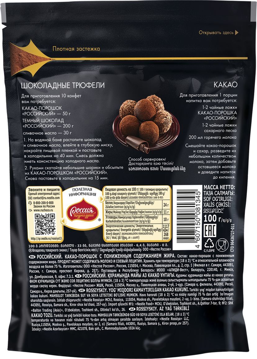 Какао-порошок Россия-Щедрая душа! Российский, 100 г