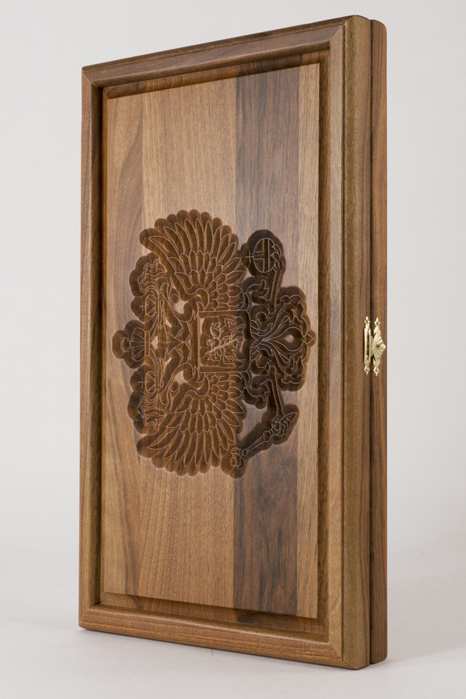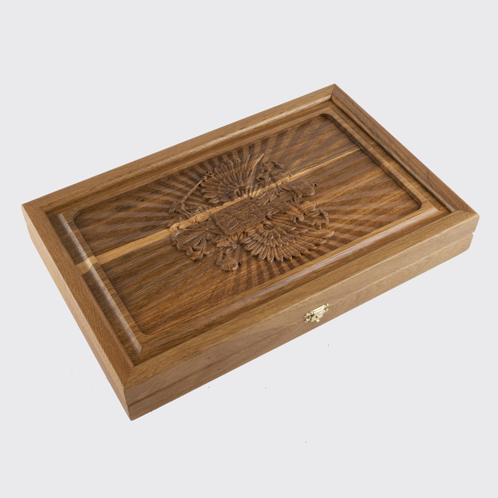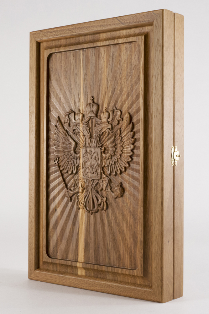 Нарды резные "Герб России" с ложементом, дуб, 36х46 см