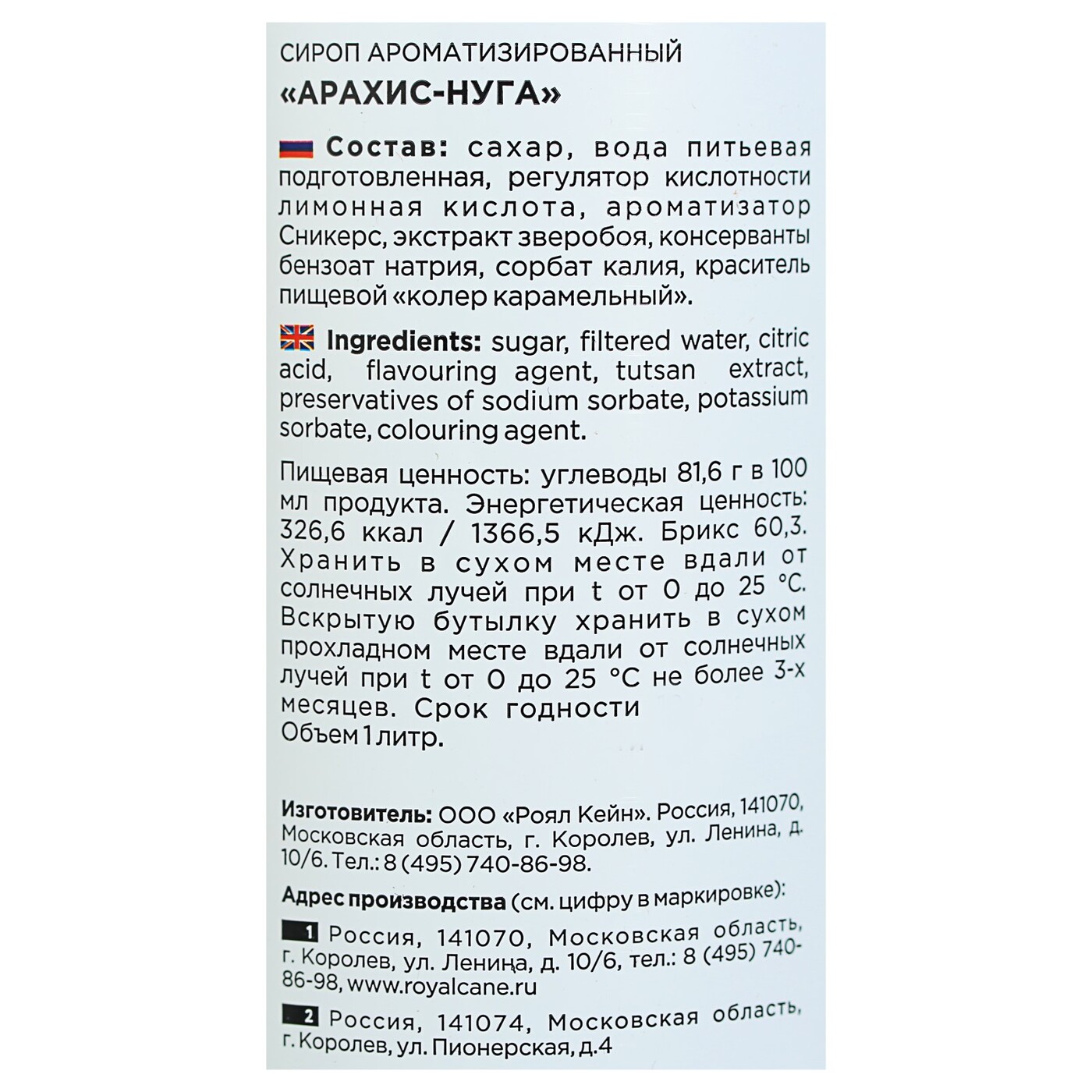 Сироп Royal Cane Арахис-Нуга, 1 л