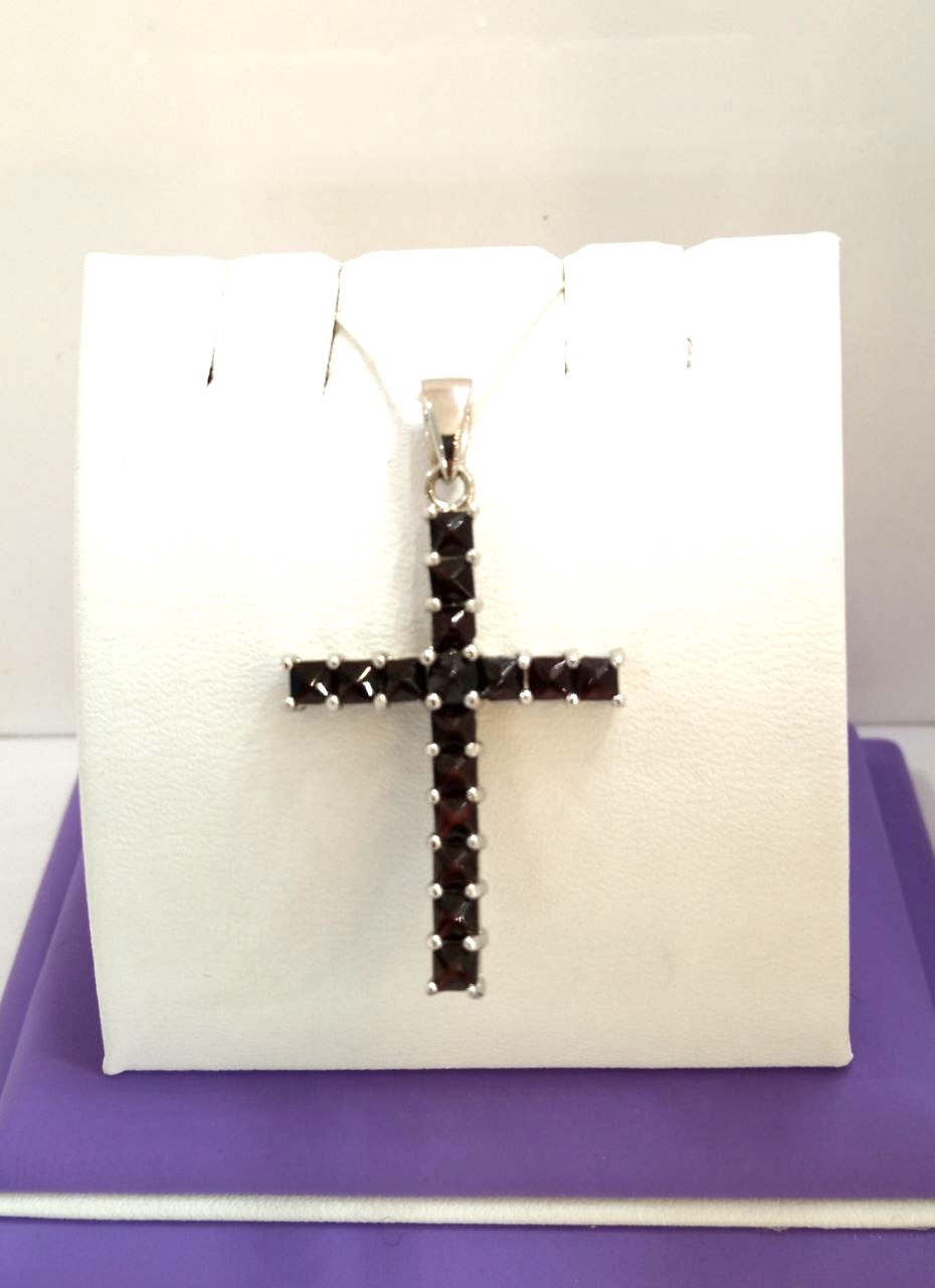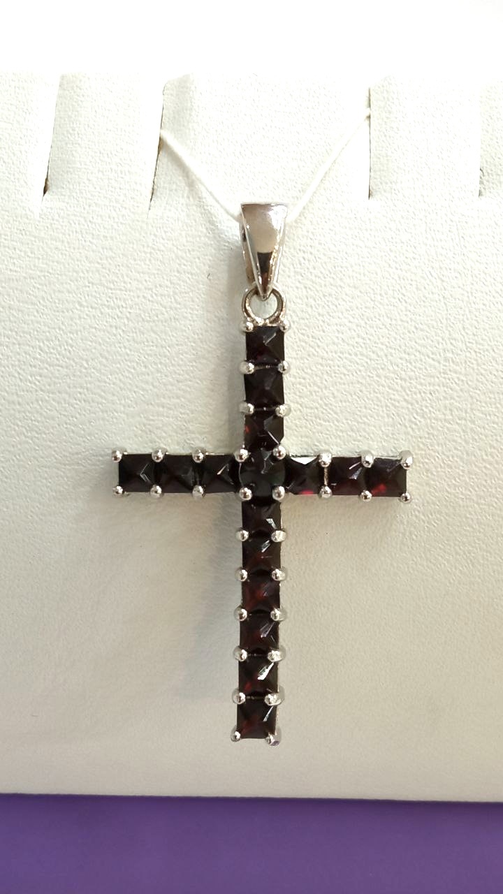 ROYAL GARNETS Крестик Серебряный 925 пробы с чешскими гранатами