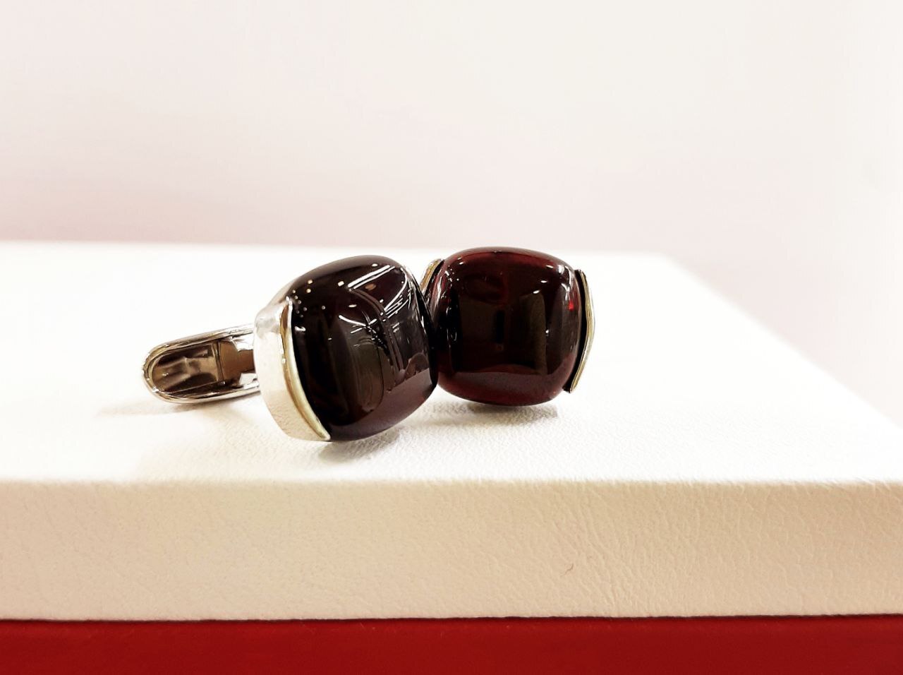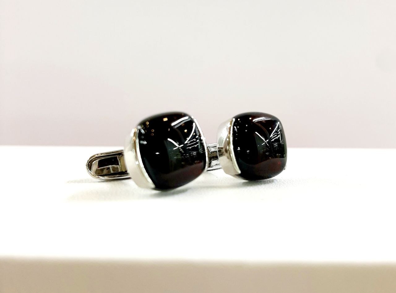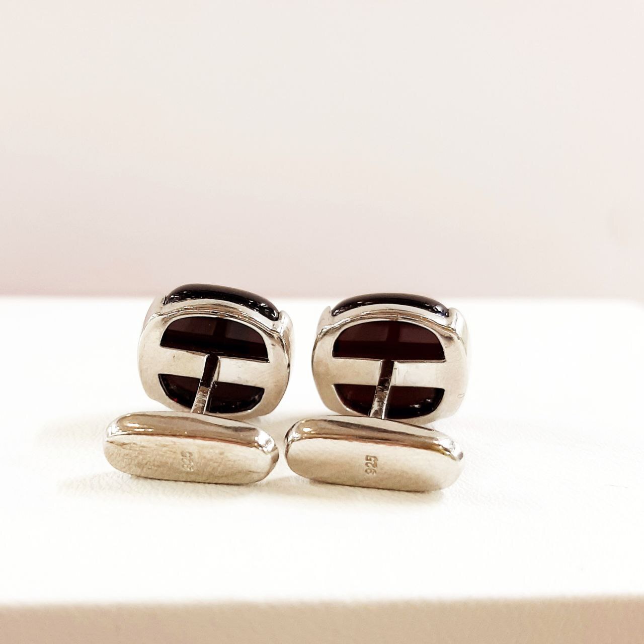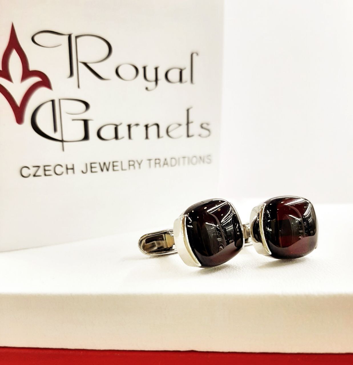 ROYAL GARNETS Запонки Серебряные запанки с чешским гранатом Строгость