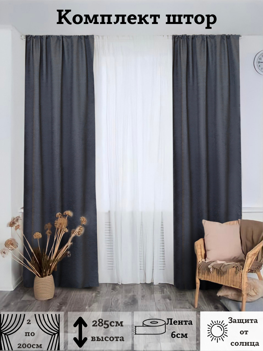 Комплект штор Royal Portiere Канвас 200*285 285х400см, серый