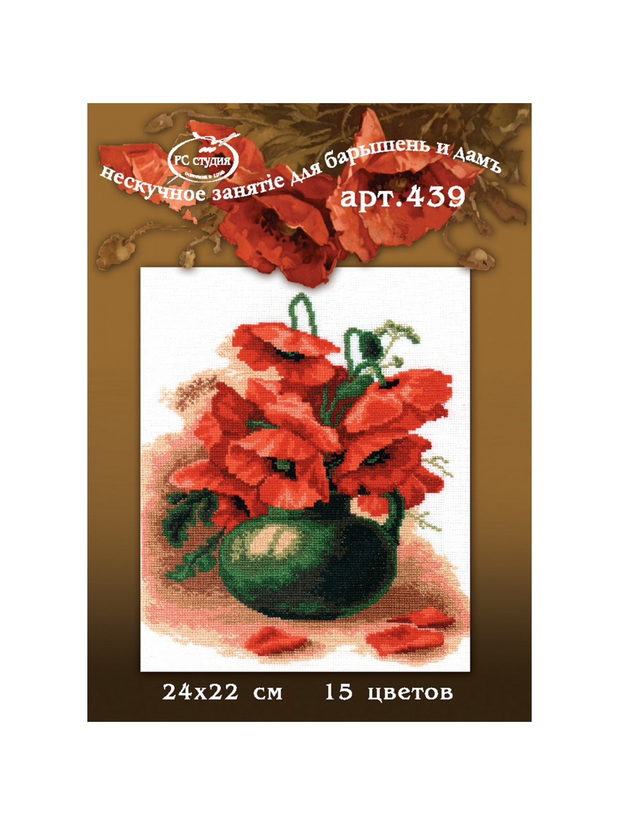 Набор для вышивания крестом РС-Студия, вышивка крестиком Маки в корзине, 24х22 см, 439
