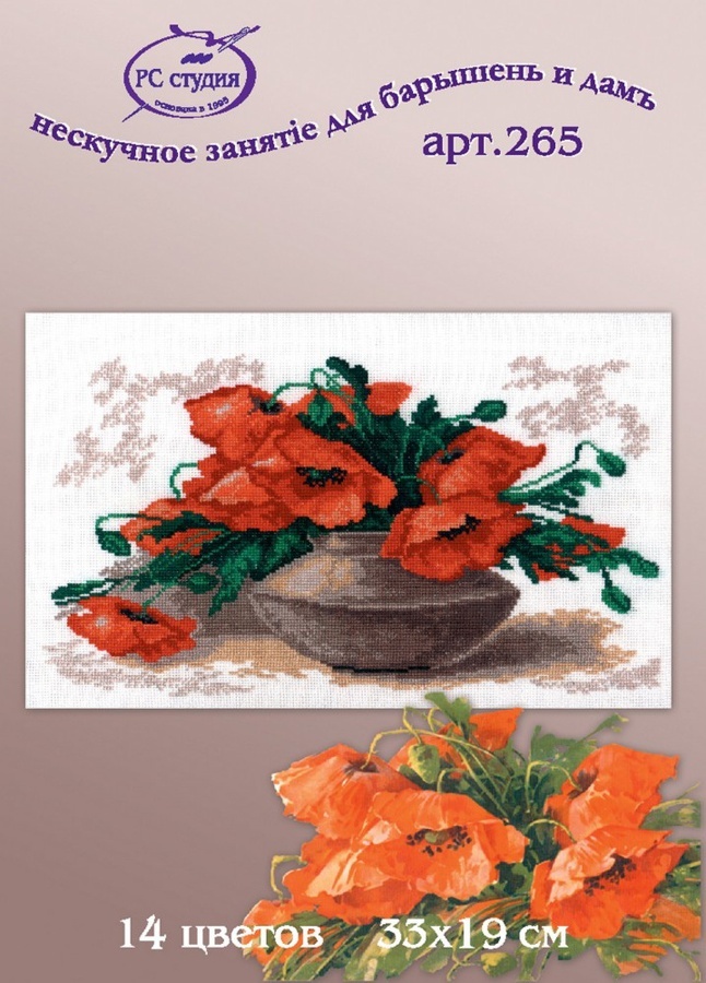 Набор для вышивания РС-Студия "Маки в вазе", 33 х 19 см