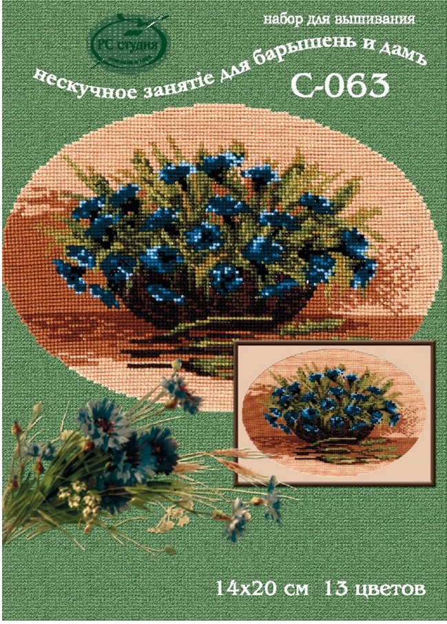 Набор для вышивания РС-Студия Васильки в корзине, 20*14 см