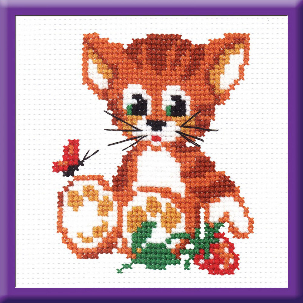 Набор для вышивания РС-Студия "Котенок с ягодкой", 10 х 12 см