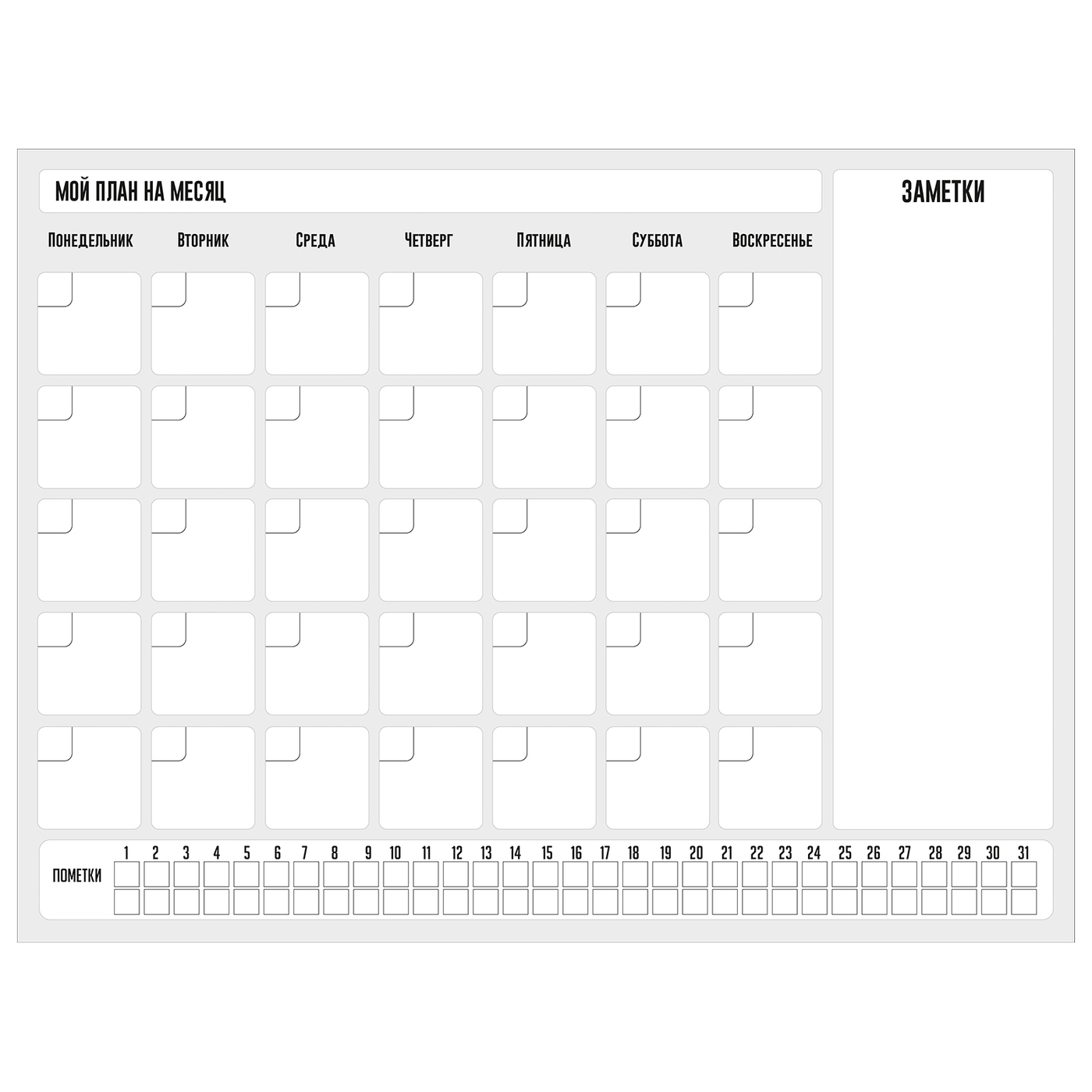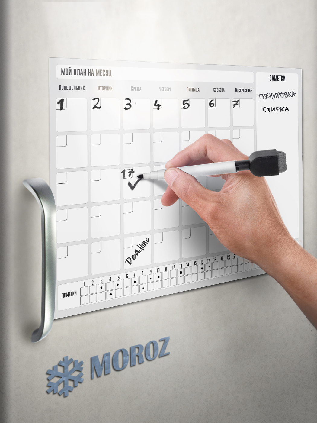 Магнитный планер Минимализм контрастный белый размером 30х40 на холодильник