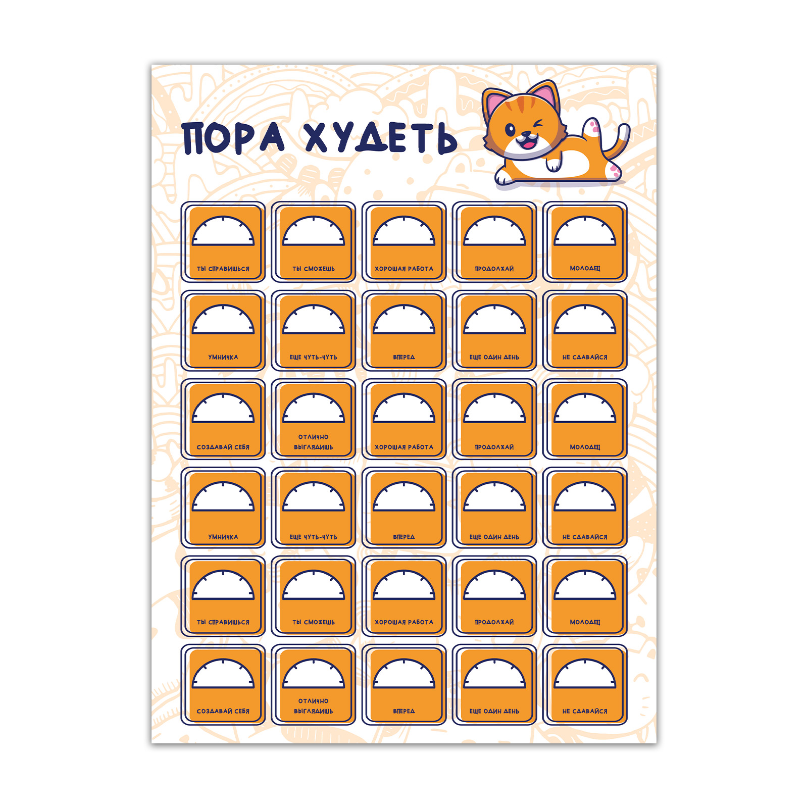 Магнитный планер "Пора худеть 4" / Планер на холодильник 30х40 / Планинг