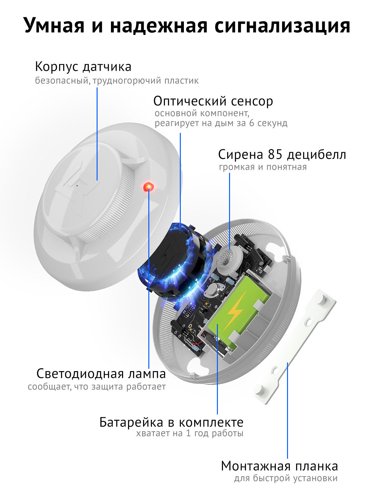 Комплект 4шт - Извещатель пожарный дымовой автономный ИП 212-142, датчик дыма (Крона в комплекте)
