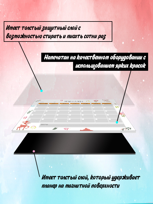 Магнитный планер ежедневник с маркером и губкой в подарок