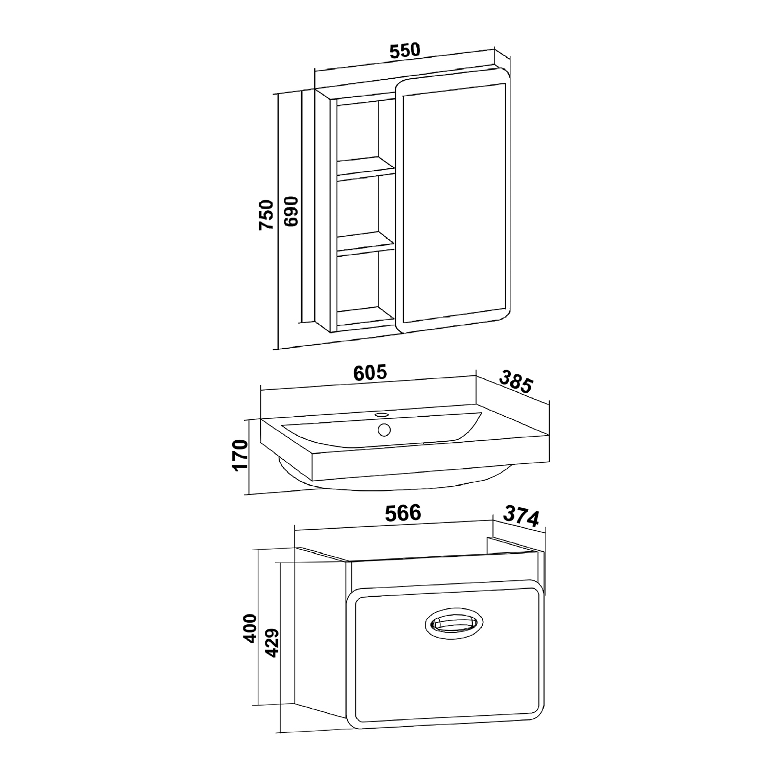 Комплект мебели для ванной Runo