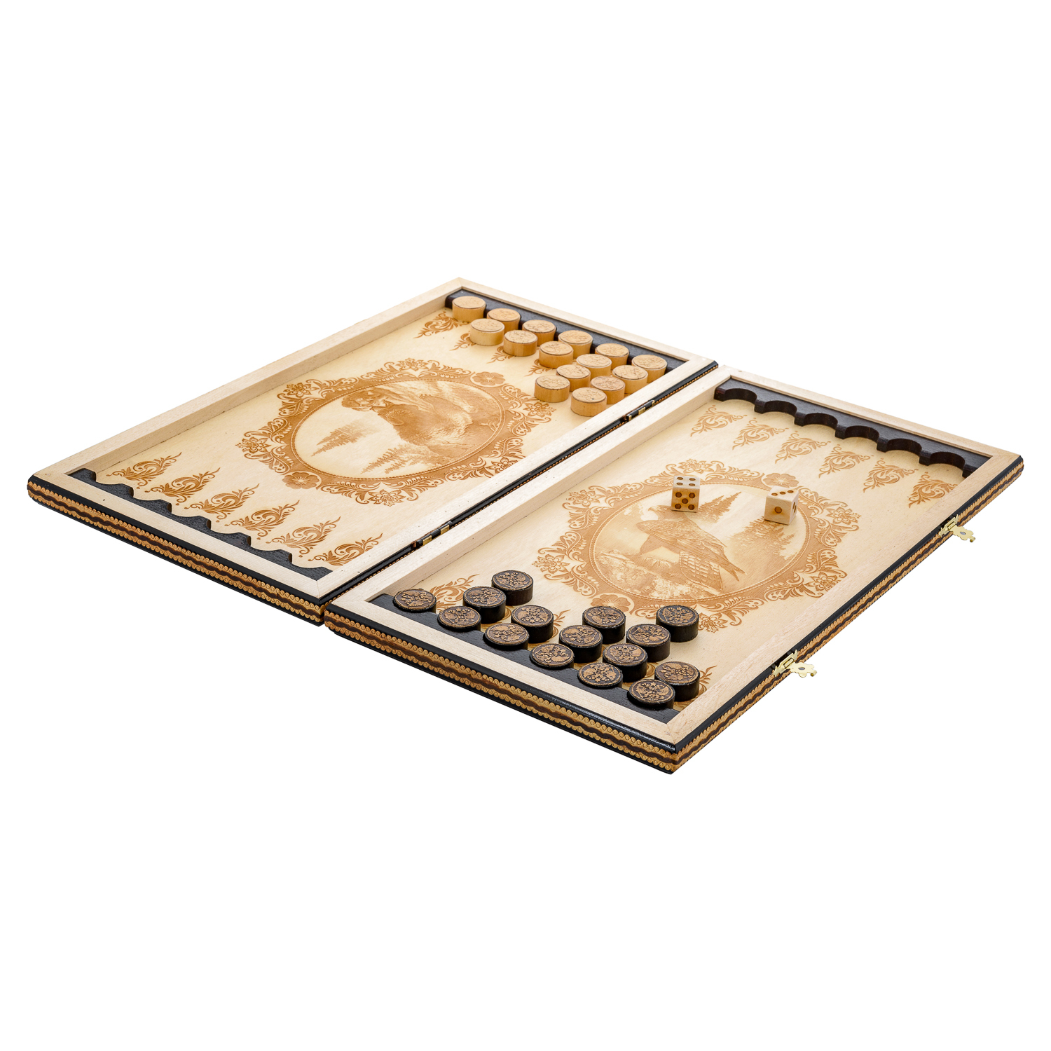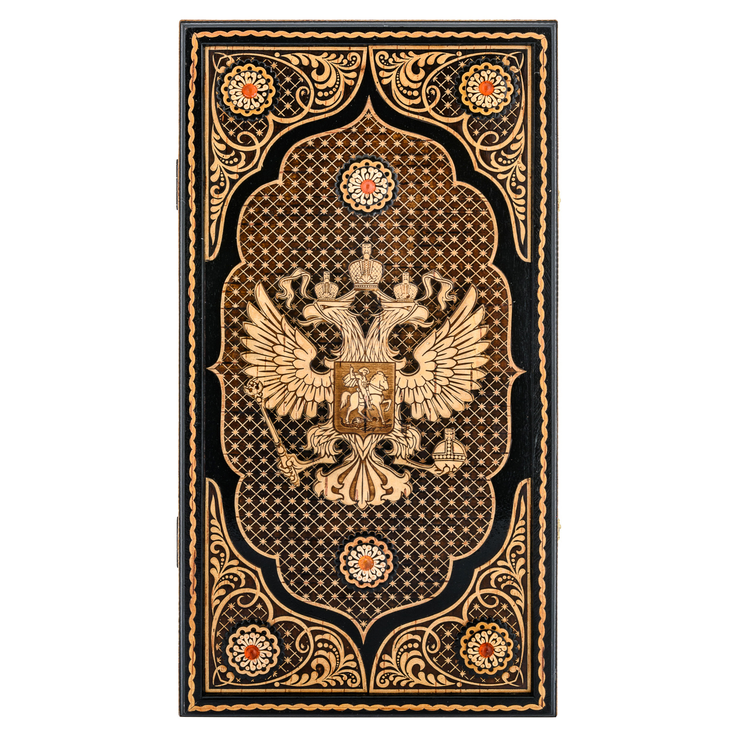 Нарды деревянные "Герб РФ" с берестой и янтарем