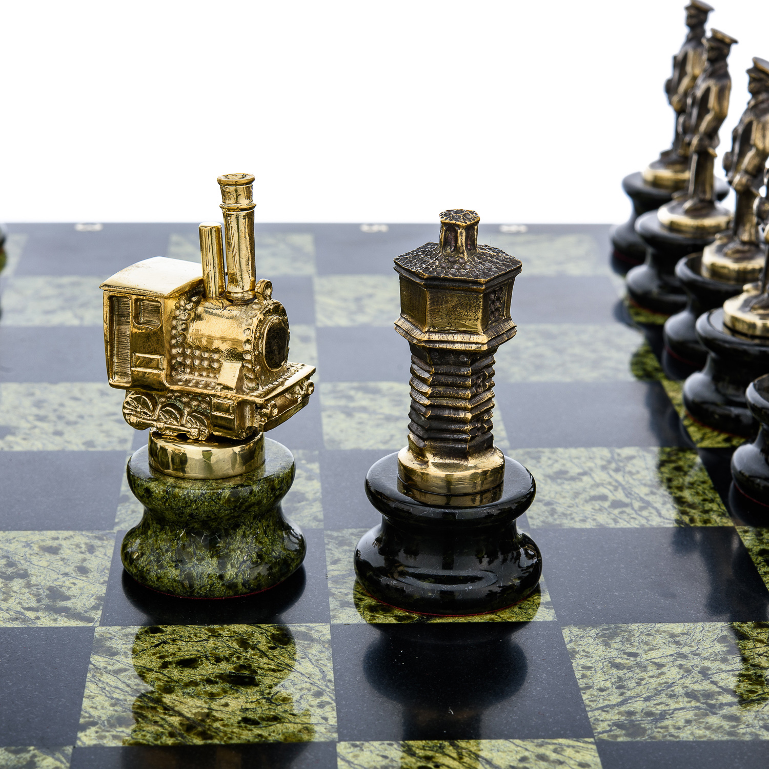 Шахматы из камня с бронзовыми фигурами "Русские"