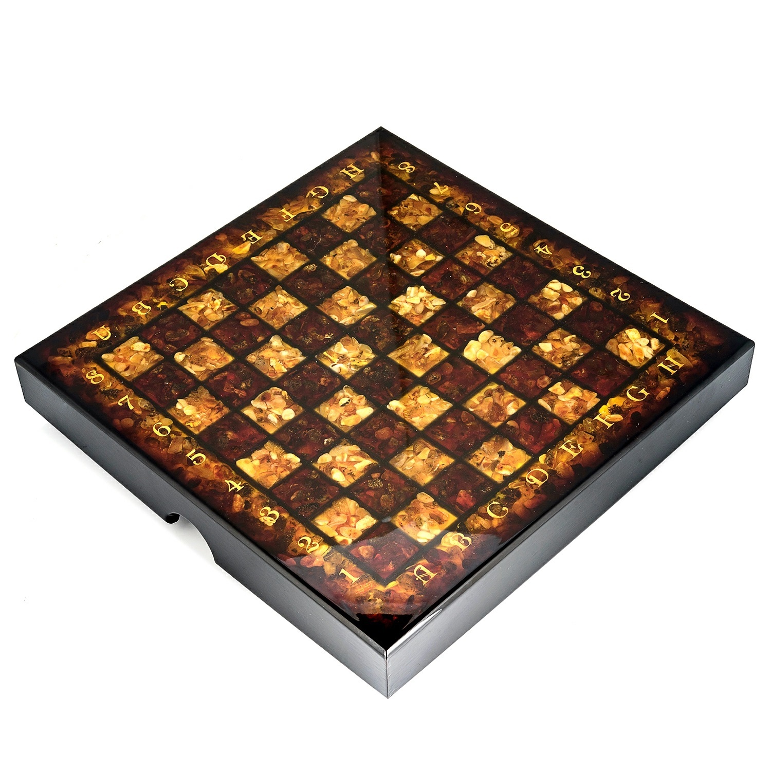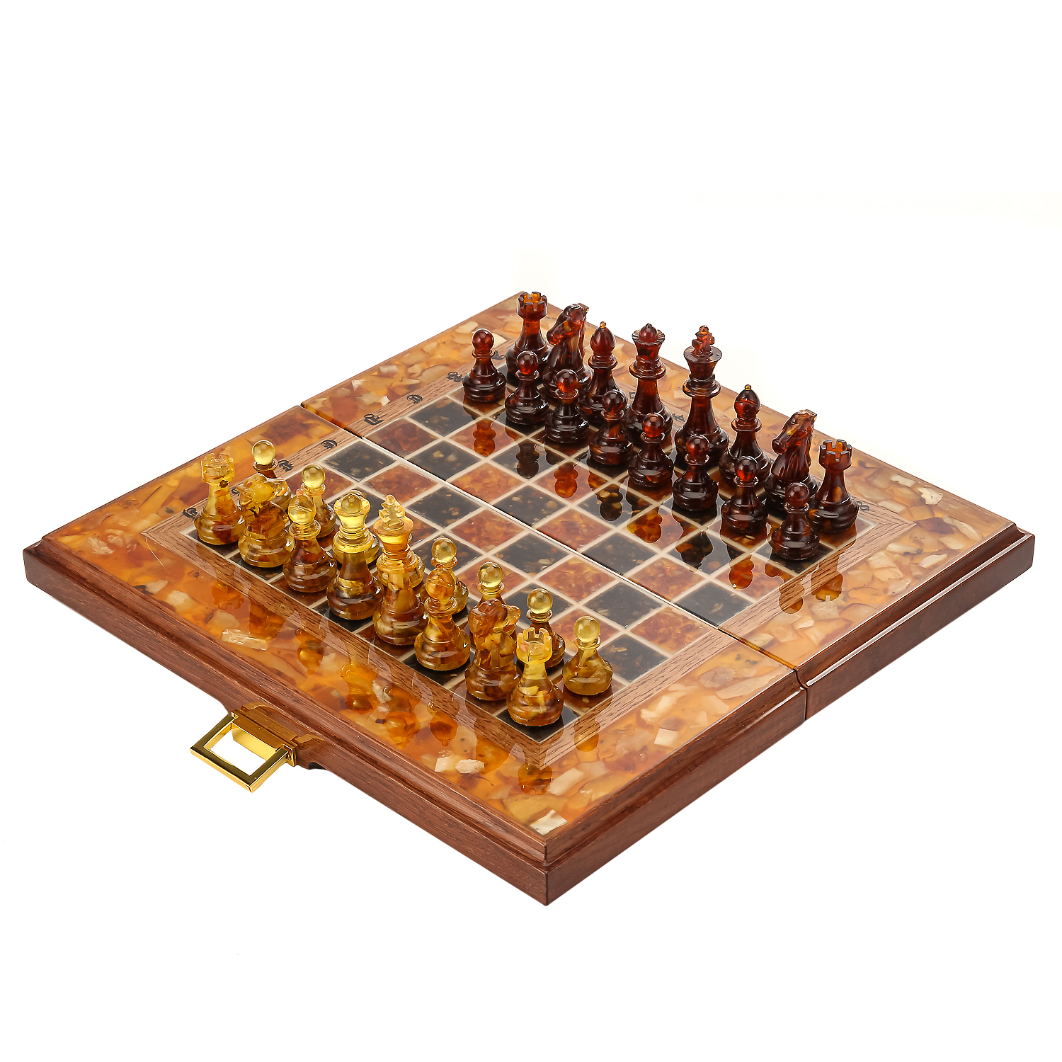 Шахматы складные с инкрустацией из янтаря и янтарными фигурами